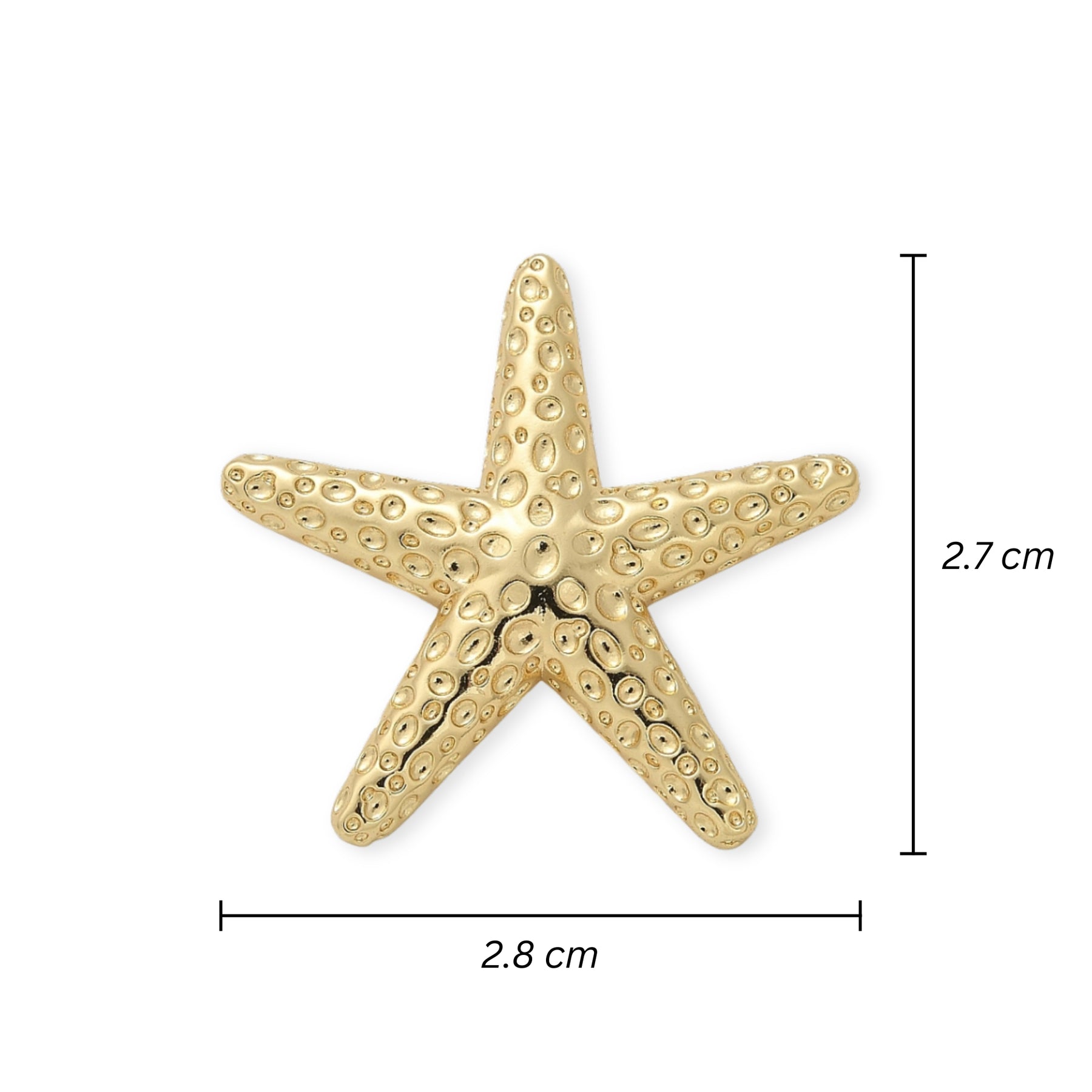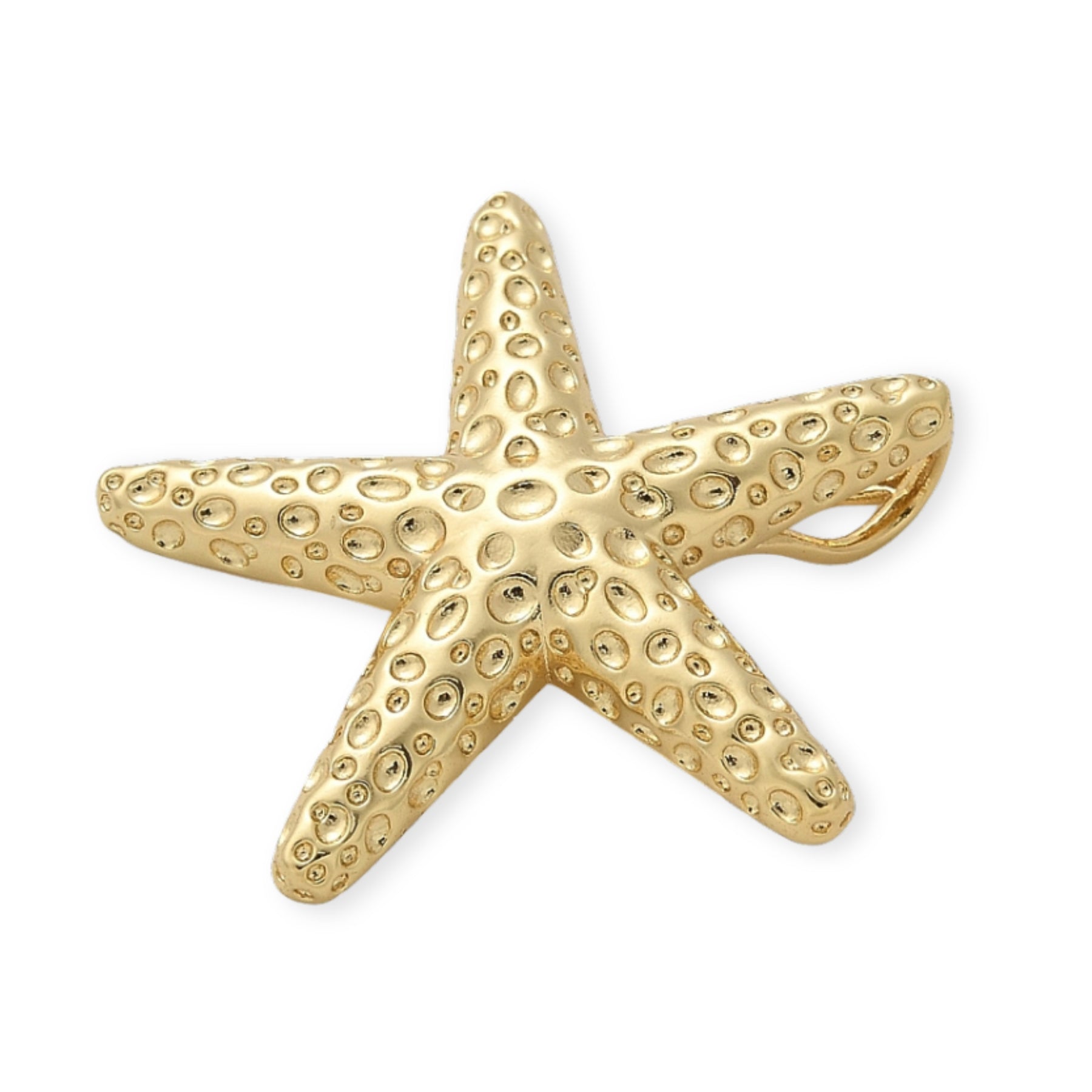 Dije en forma de estrella de mar, elaborado en chapa de oro con ojal trasero para fácil colocación.