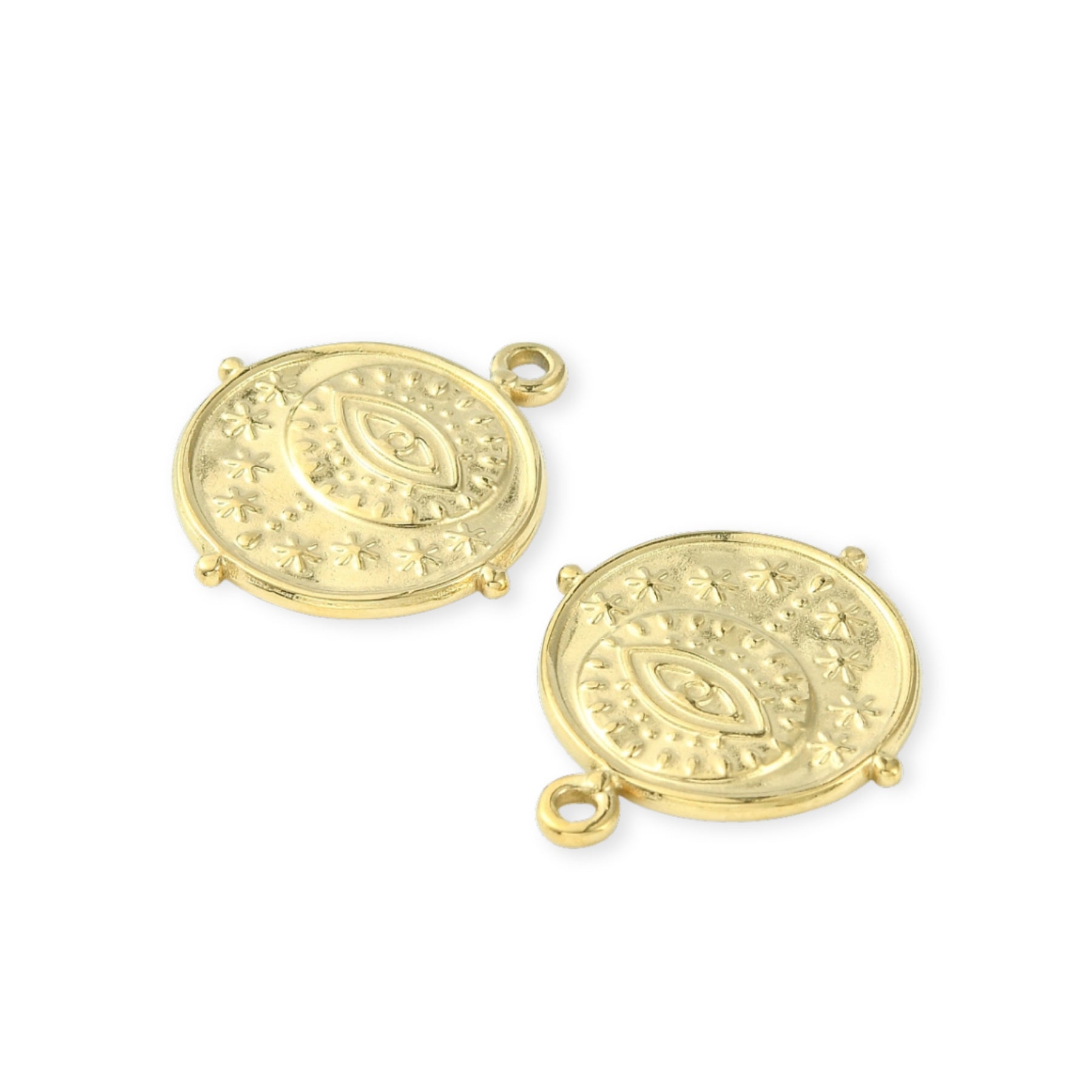 Medidas para Dije circular de ojo de acero inoxidable con detalles de estrellas