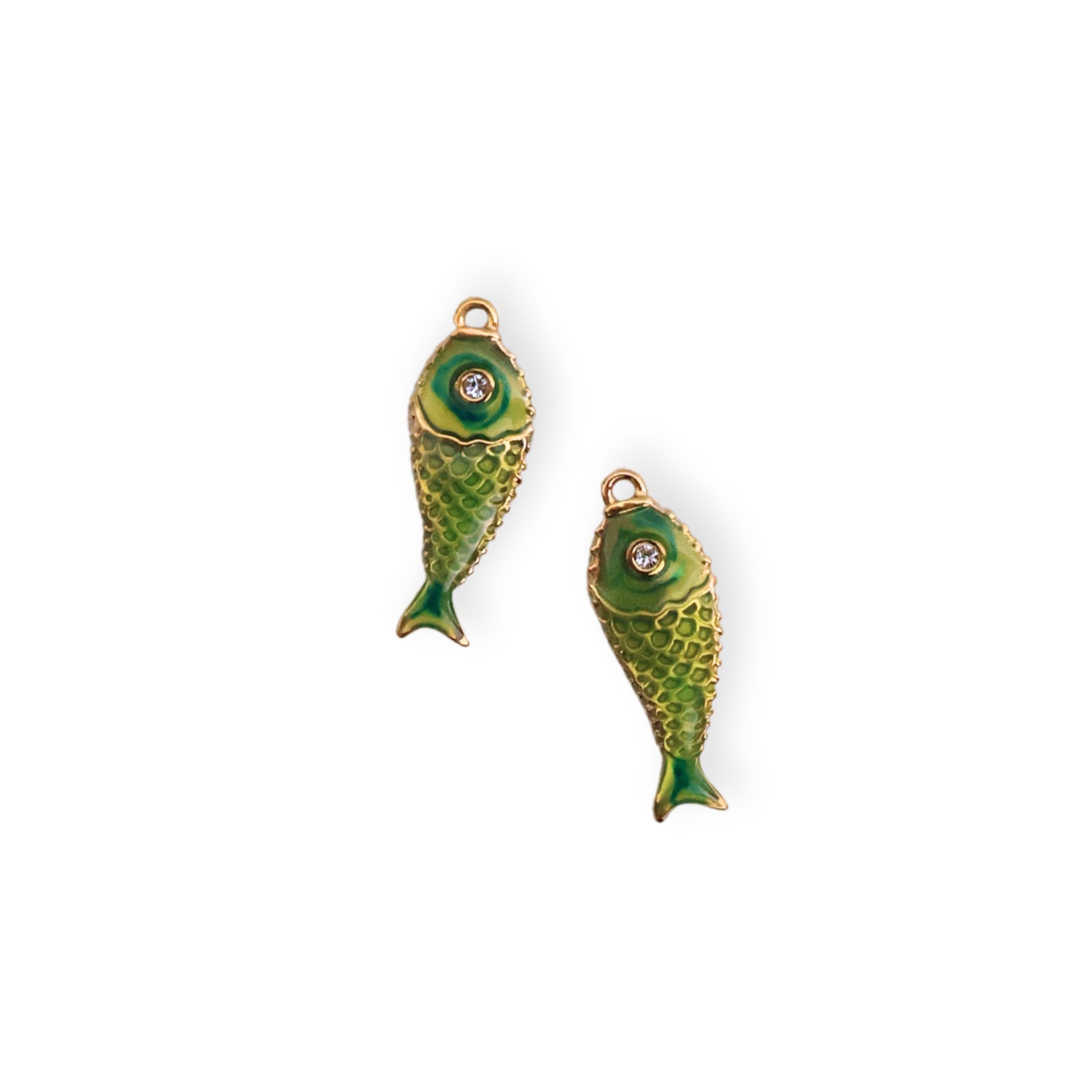 Dije en forma de pez elaborado en acero inoxidable, con ojo decorado con zirconia brillante.