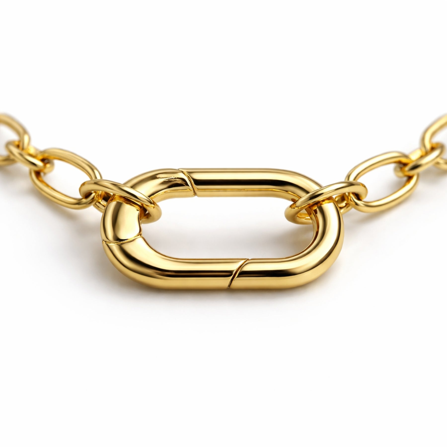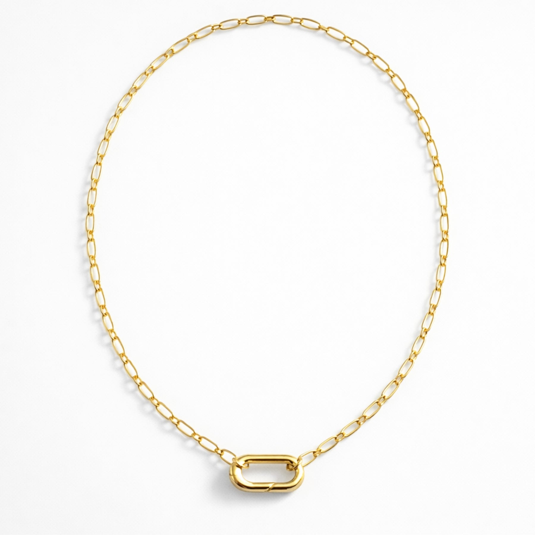 Cadena elaborada en chapa de oro con broche ovalado de chapa de oro.