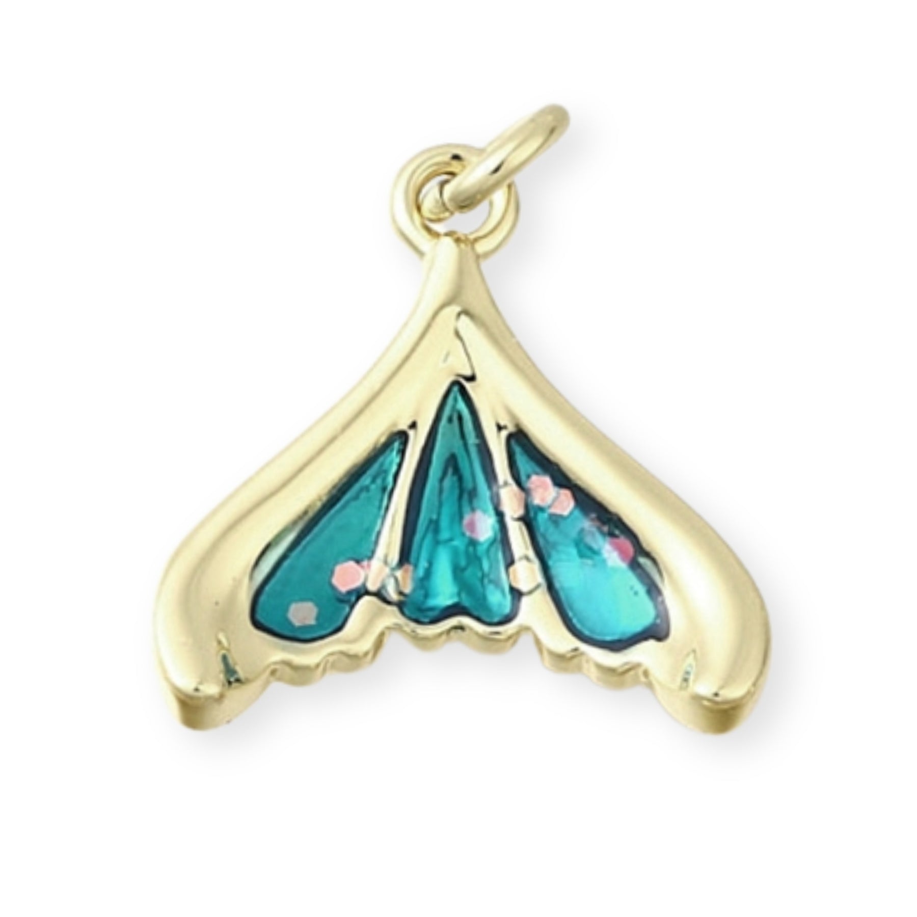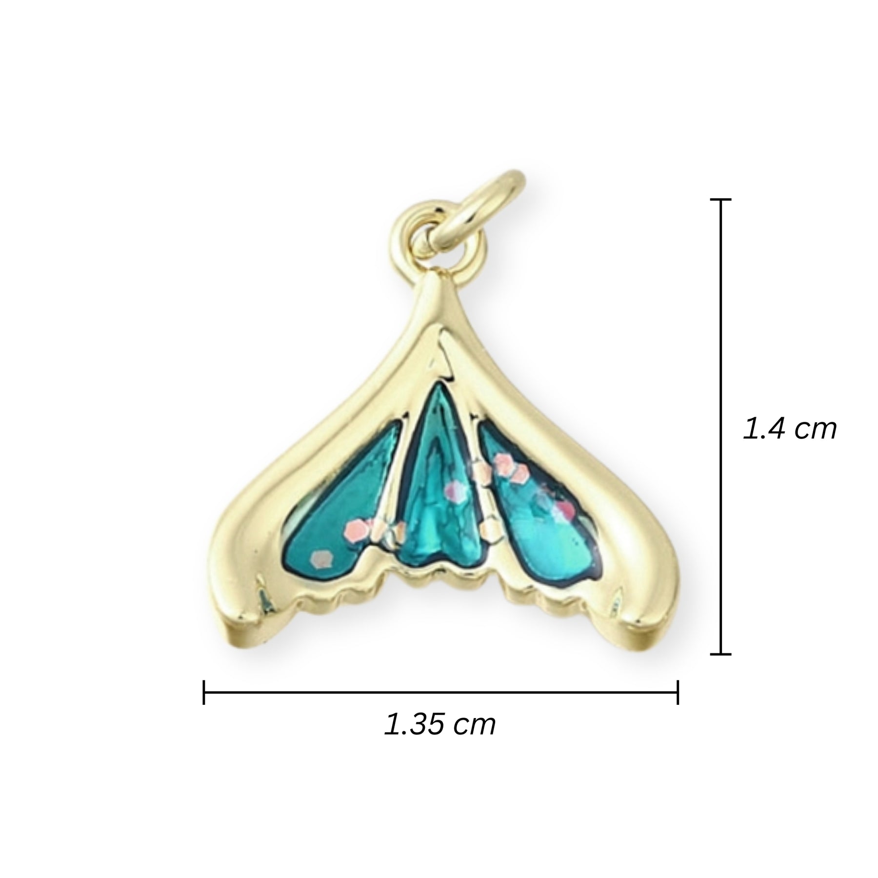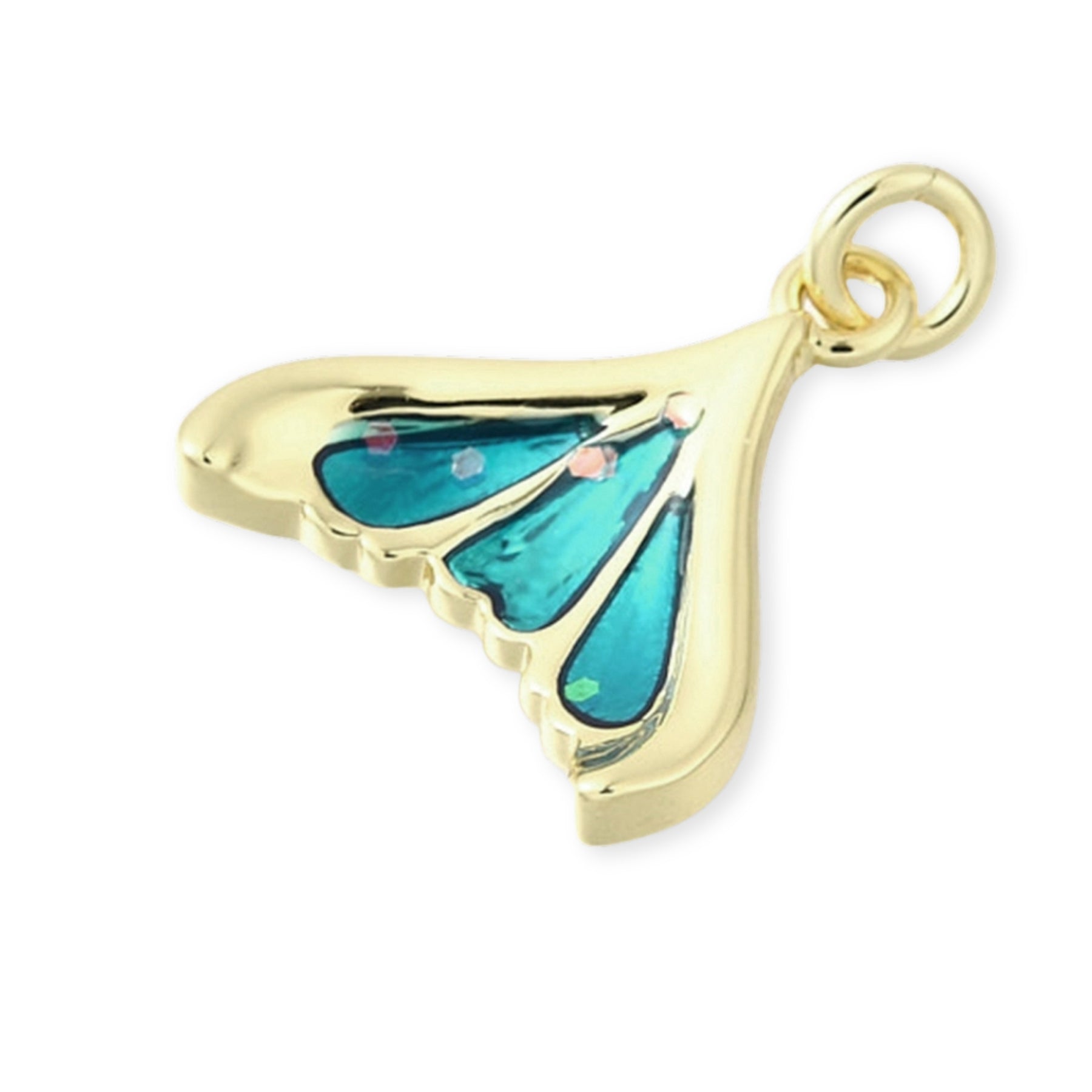 Dije en forma de aleta elaborado en chapa de oro con acabado esmaltado en tono brillante.