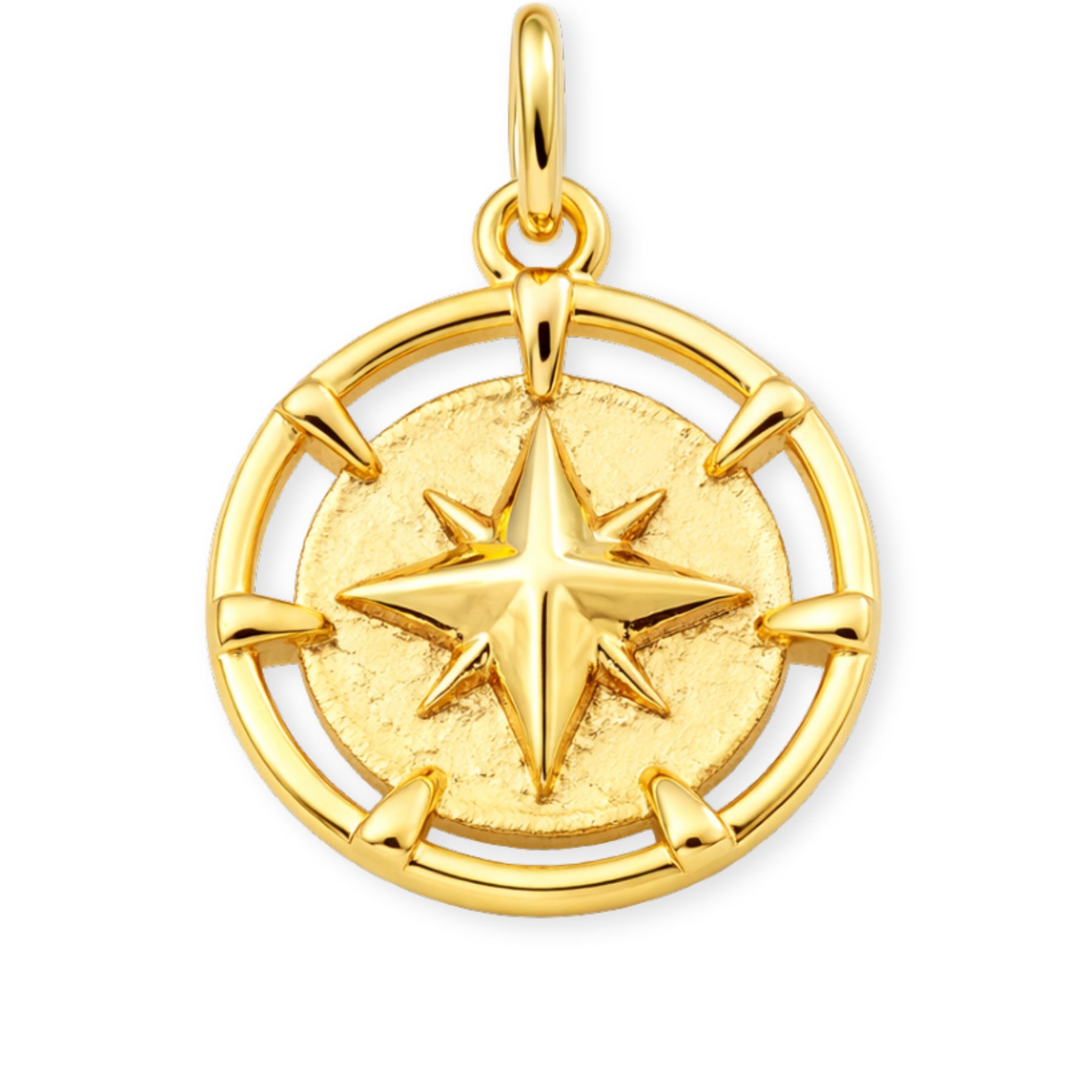 Dije circular de brújula elaborado en chapa de oro.