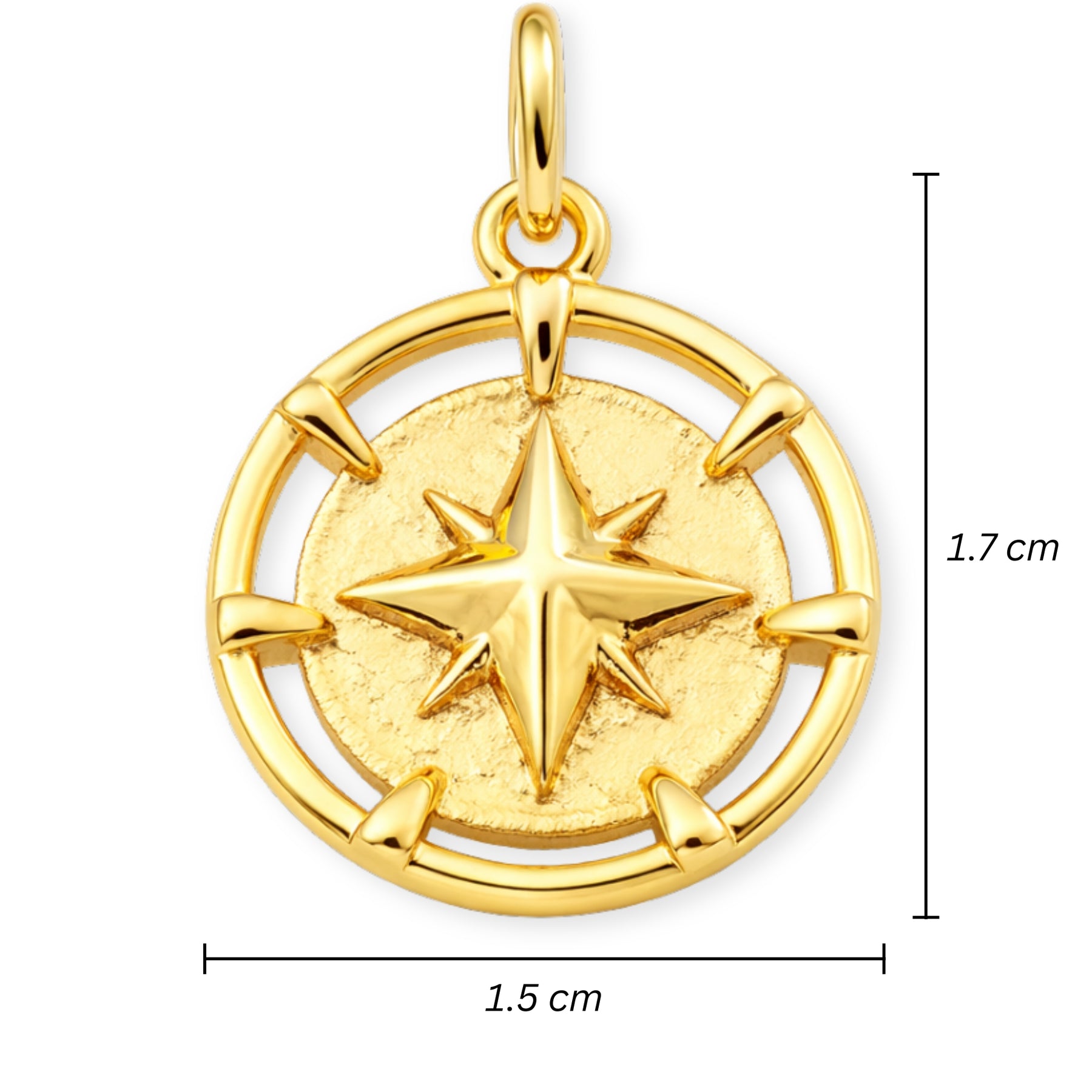 Medidas para Dije circular de brújula de chapa de oro