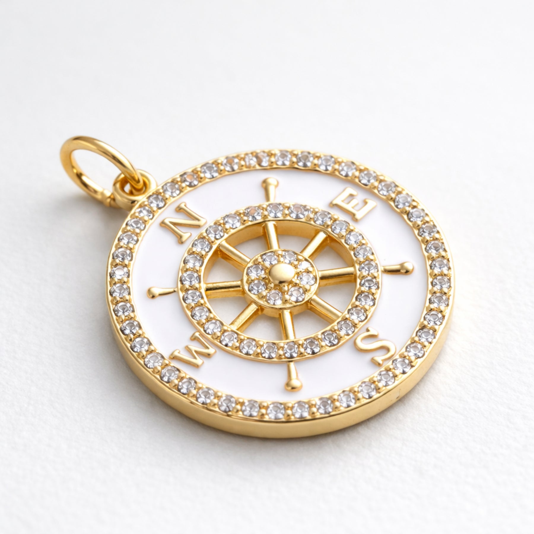 Dije circular de brújula de chapa de oro con zirconia y esmalte