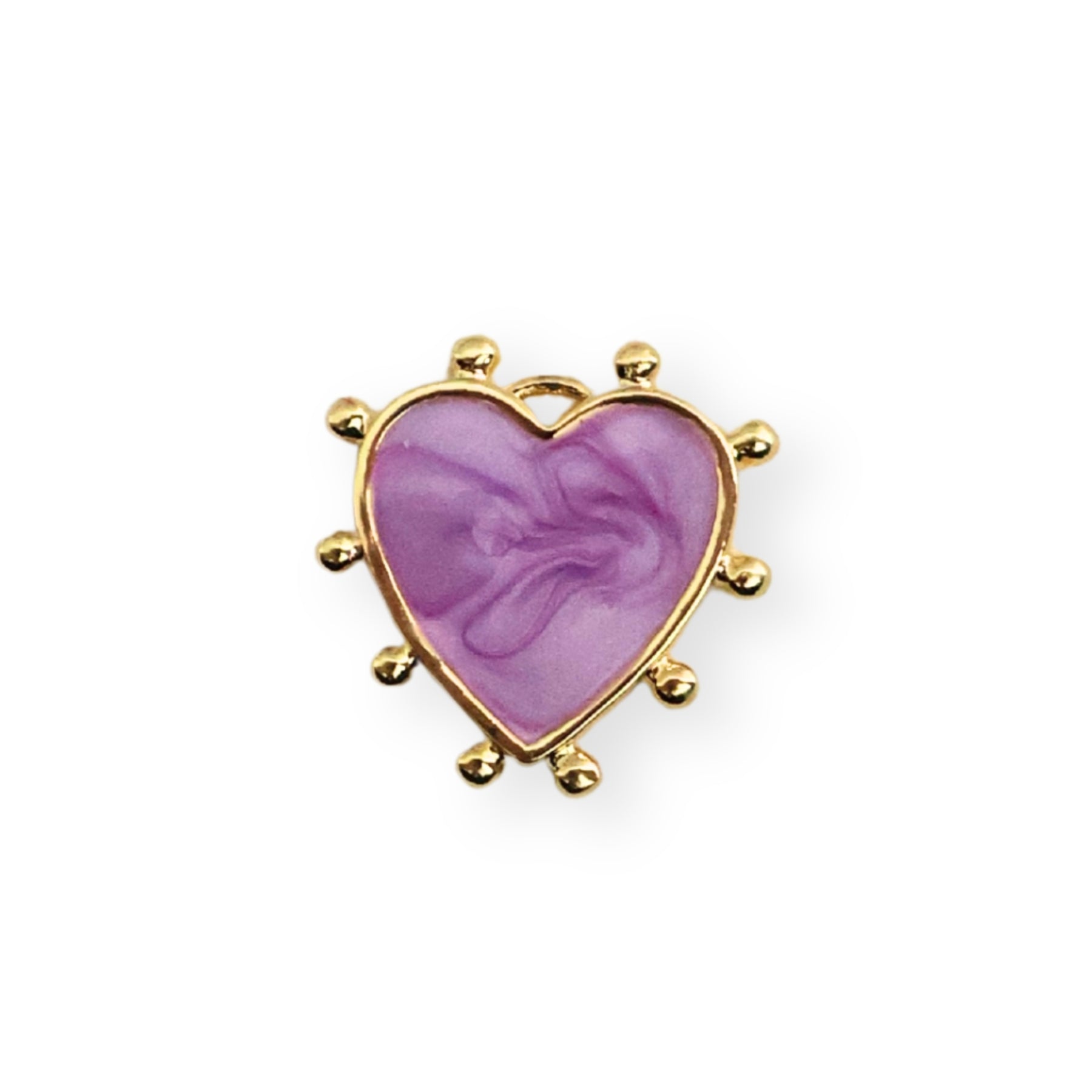 Dije de corazón de chapa de oro con esmalte en rosa, negro o blanco.