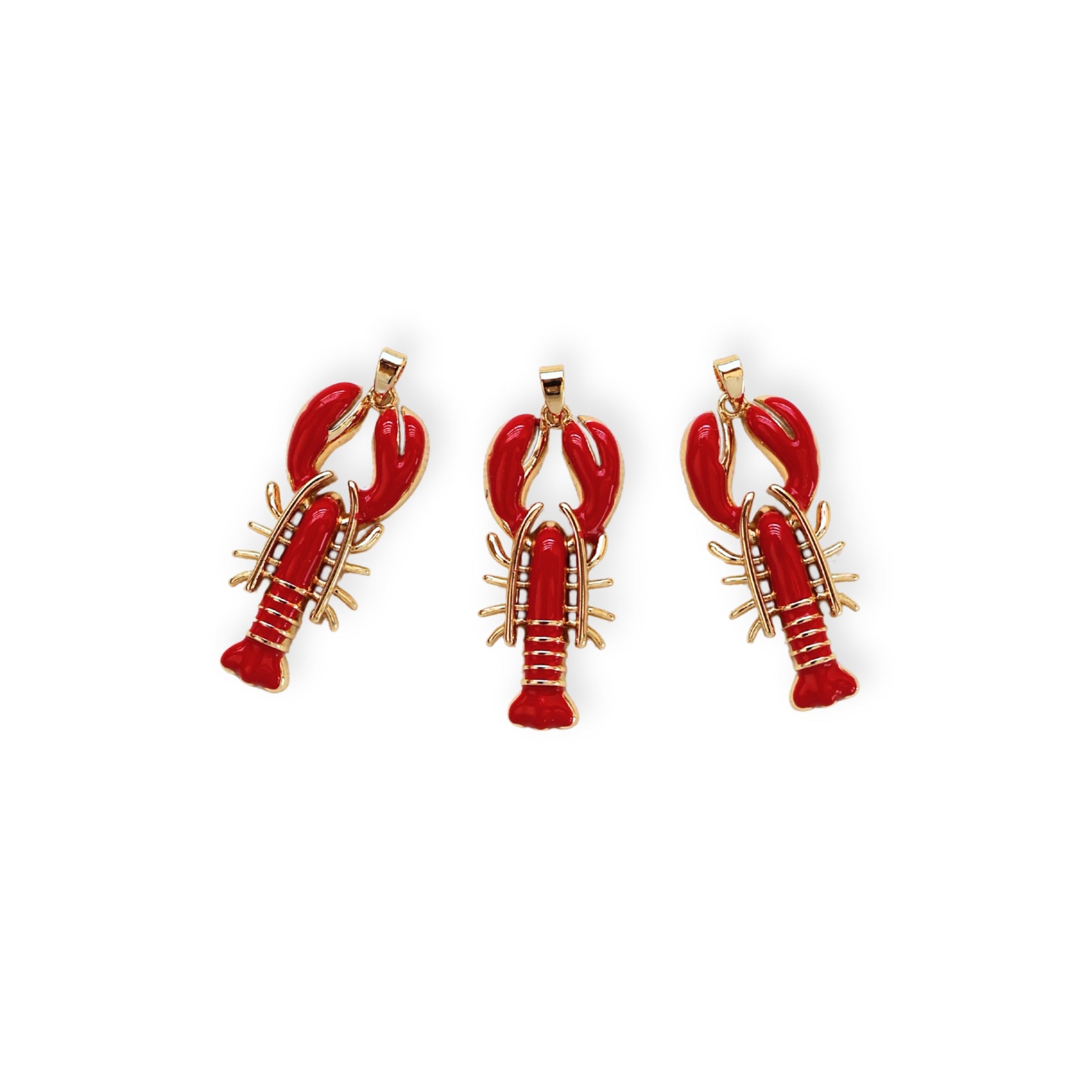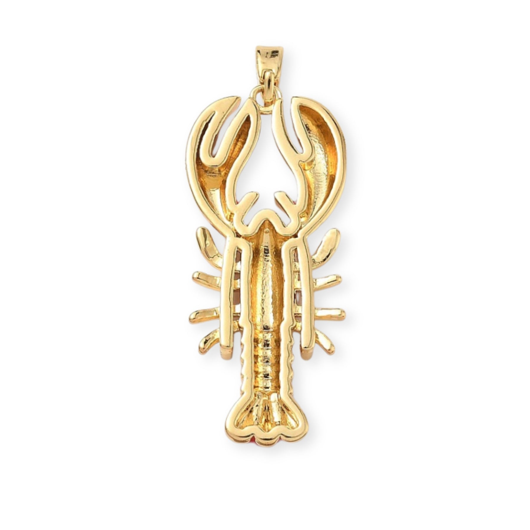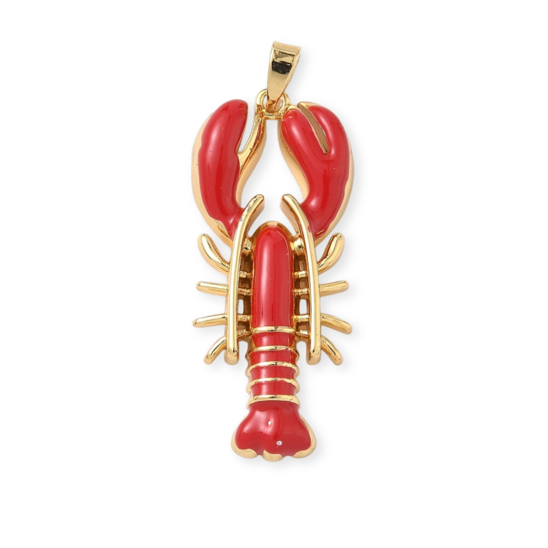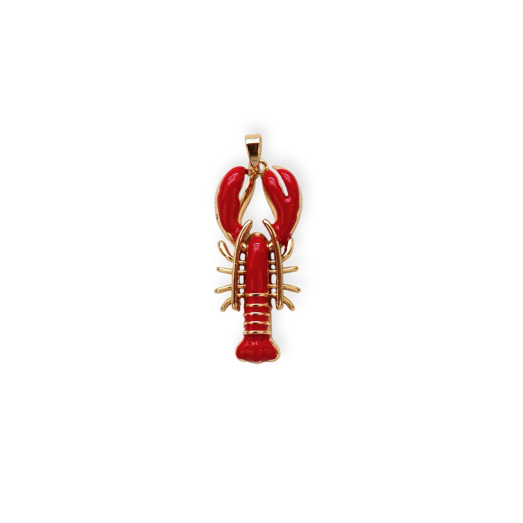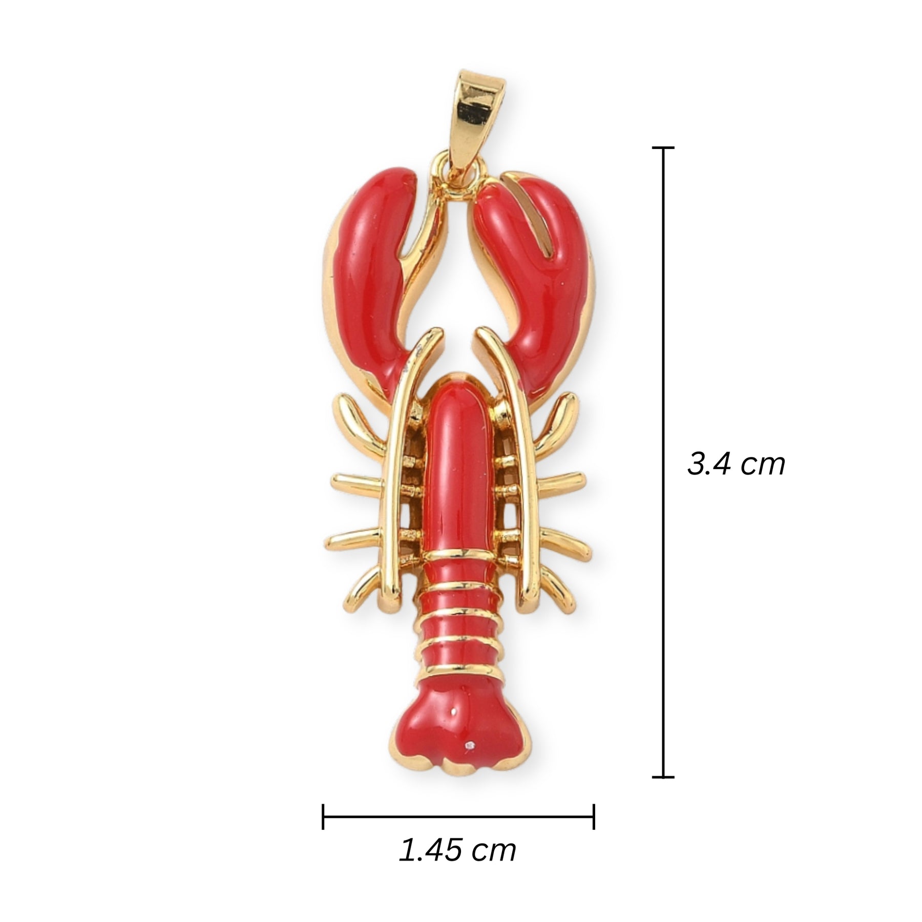 Dije en forma de langosta elaborado en chapa de oro, esmaltado en rojo brillante.