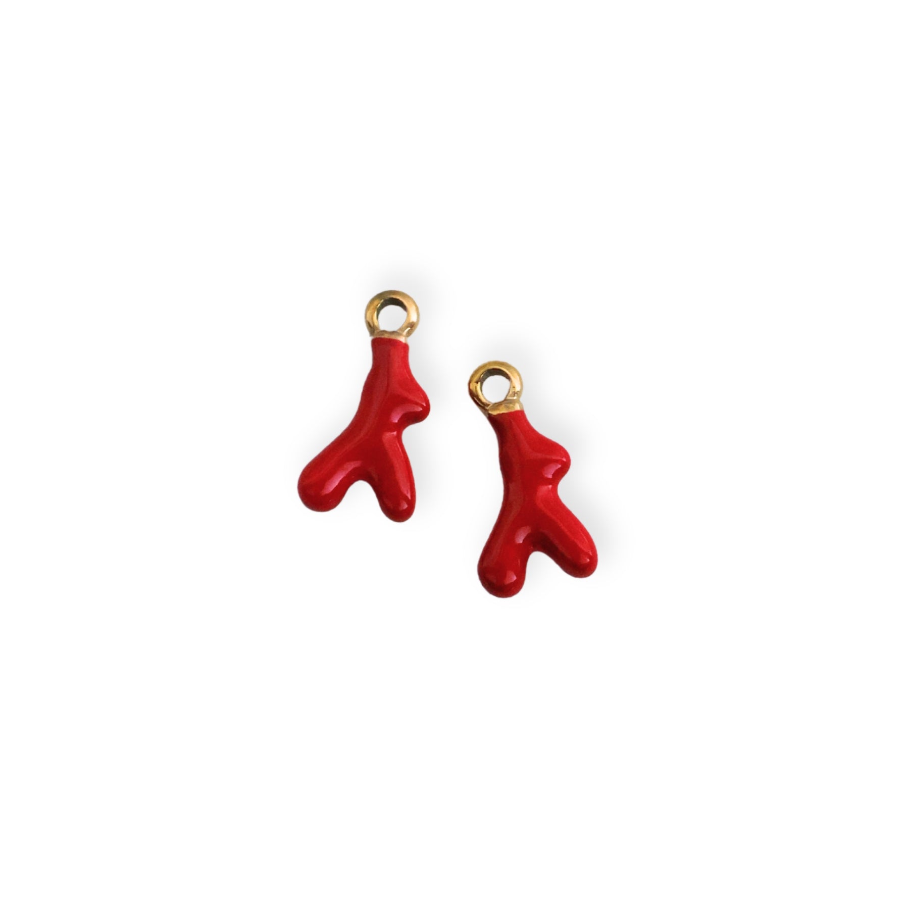 Dije en forma de coral, elaborado en chapa de oro y cubierto con esmalte.