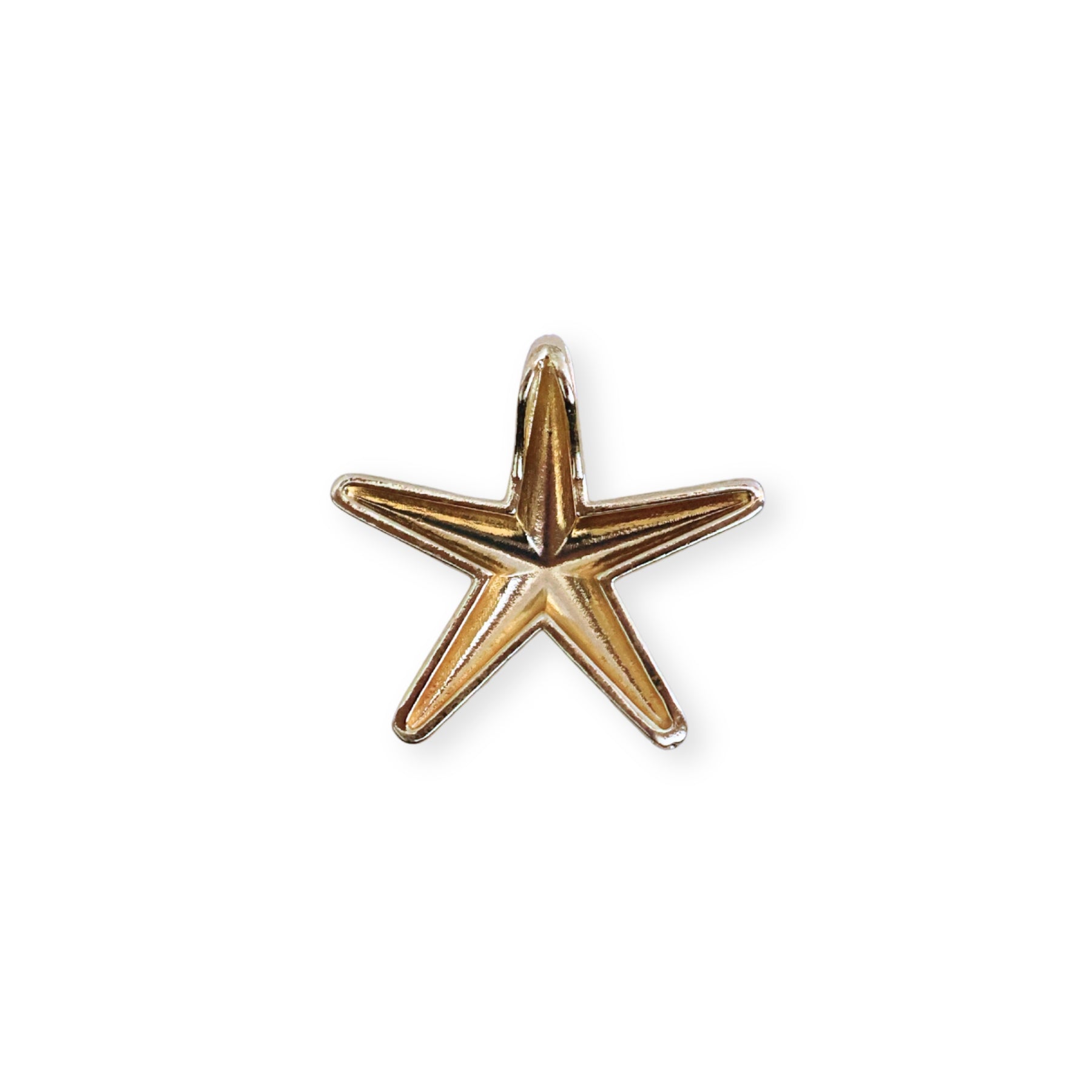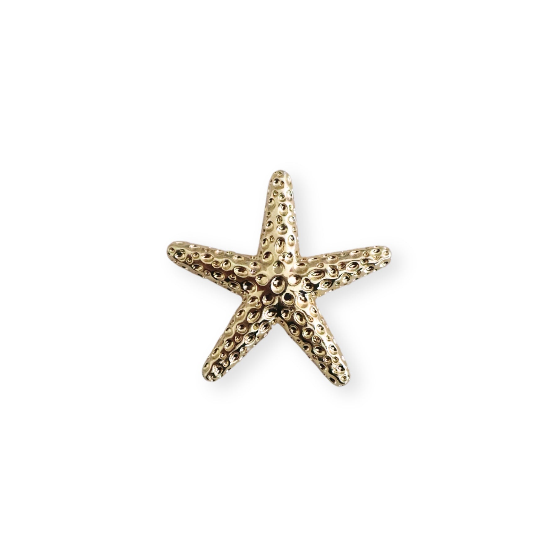 Dije en forma de estrella de mar, elaborado en chapa de oro con ojal trasero para fácil colocación.