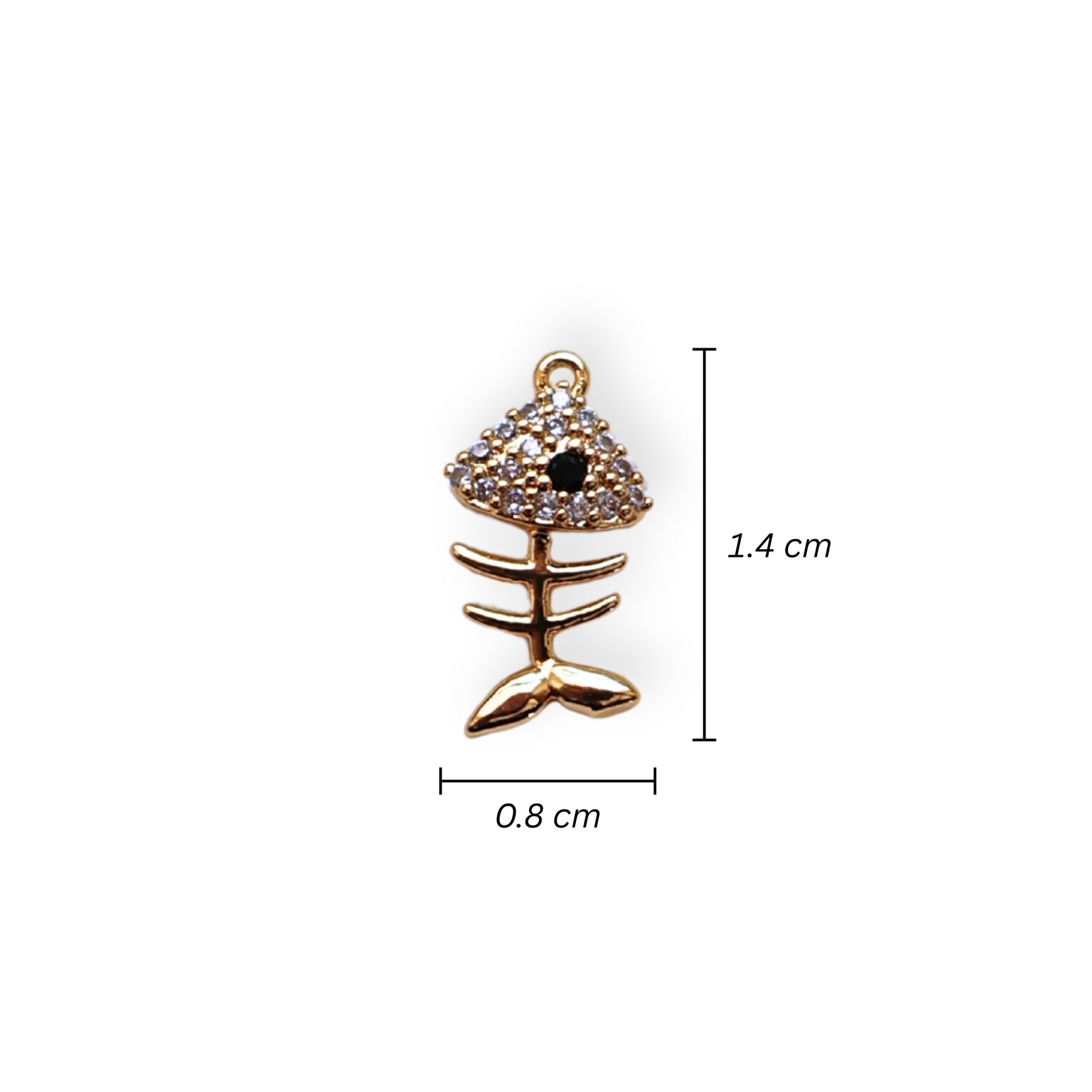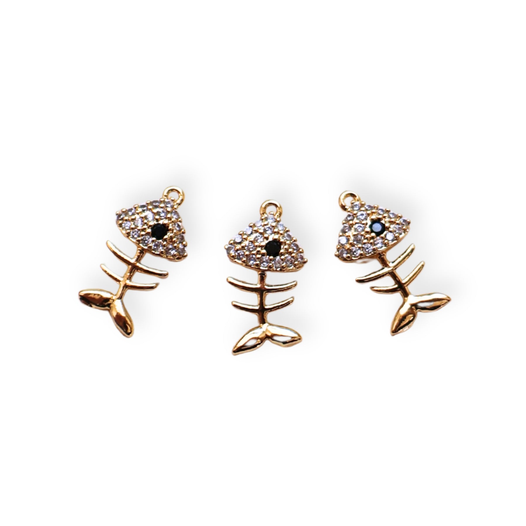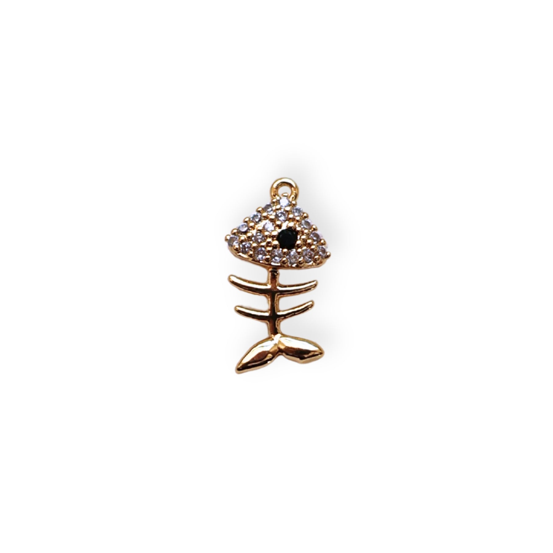 Dije en forma de pez de chapa de oro con zirconias brillantes