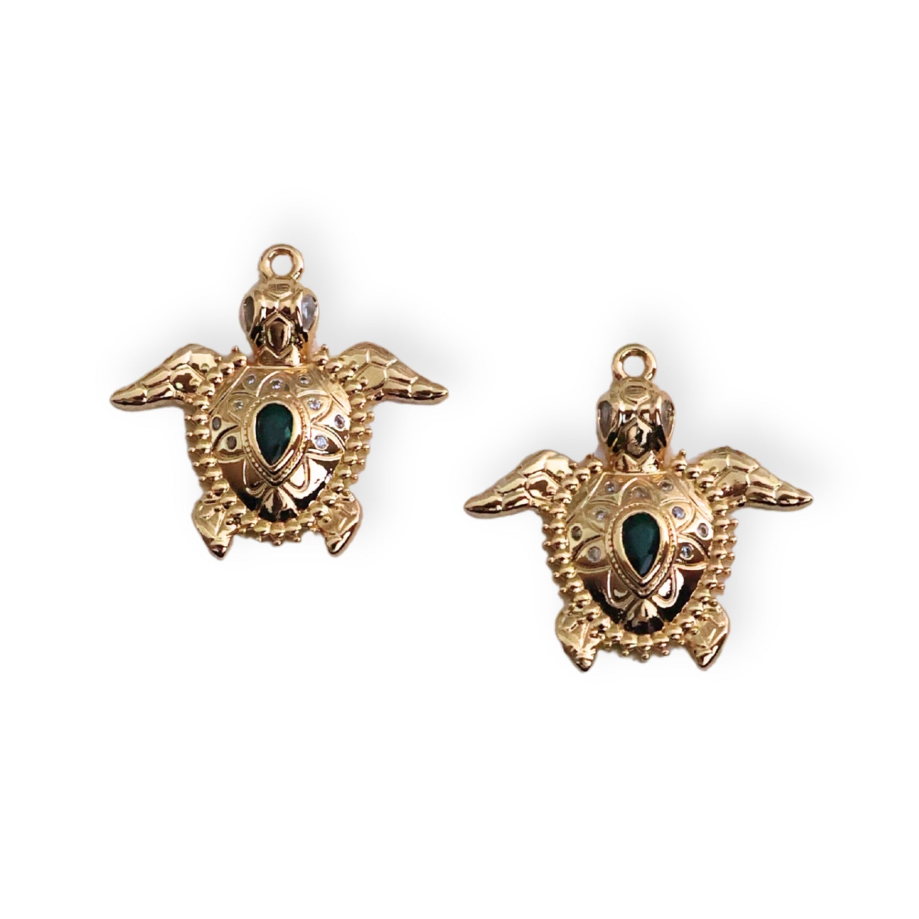 Dije en forma de tortuga elaborado en chapa de oro, con zirconia brillante al centro.