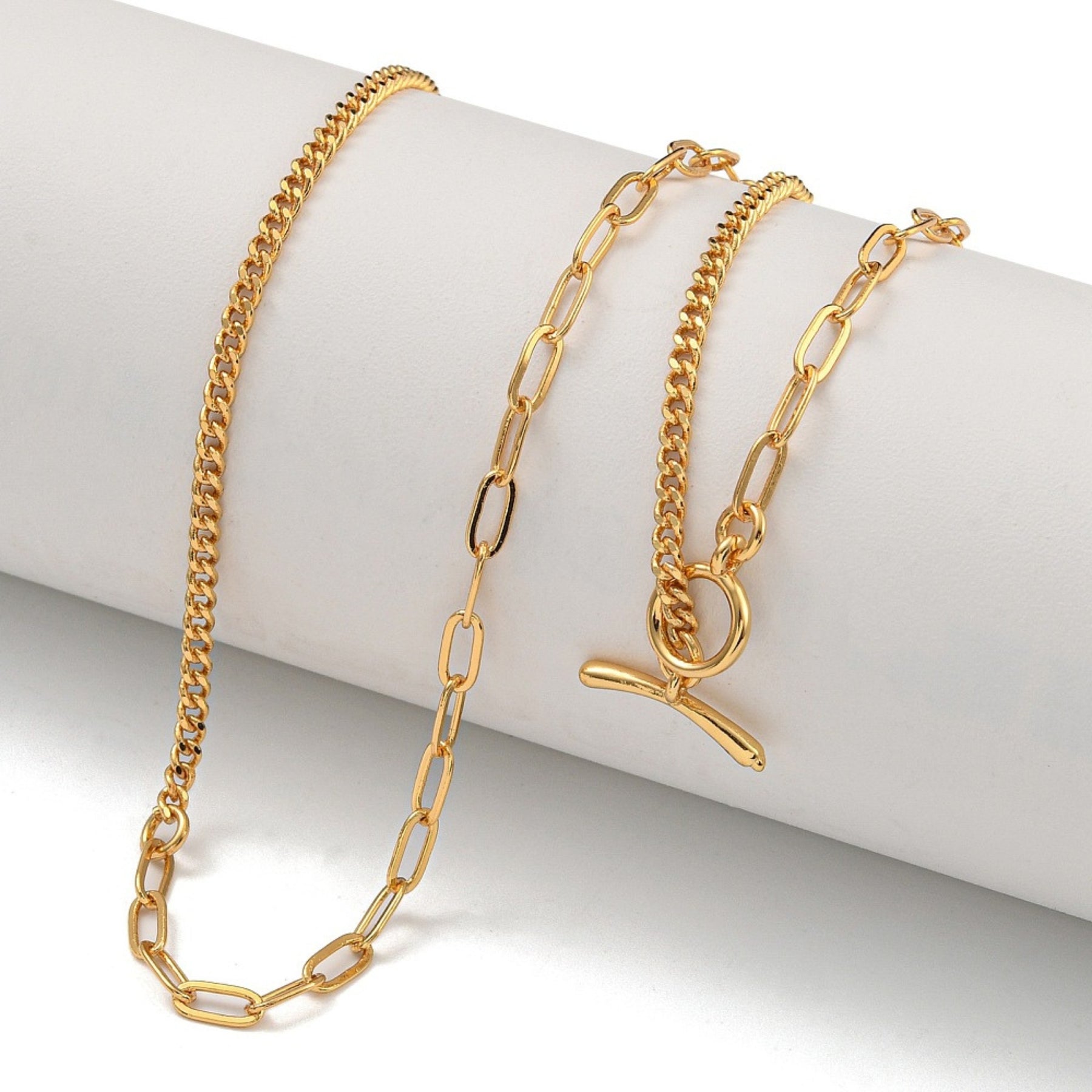 Cadena elaborada con broche "T" de chapa de oro
