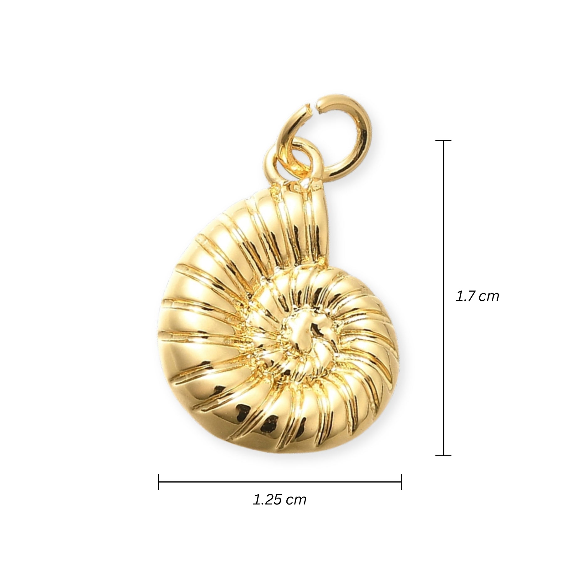 I have a snail-shaped pendant made of gold-plated metal with a shiny finish.