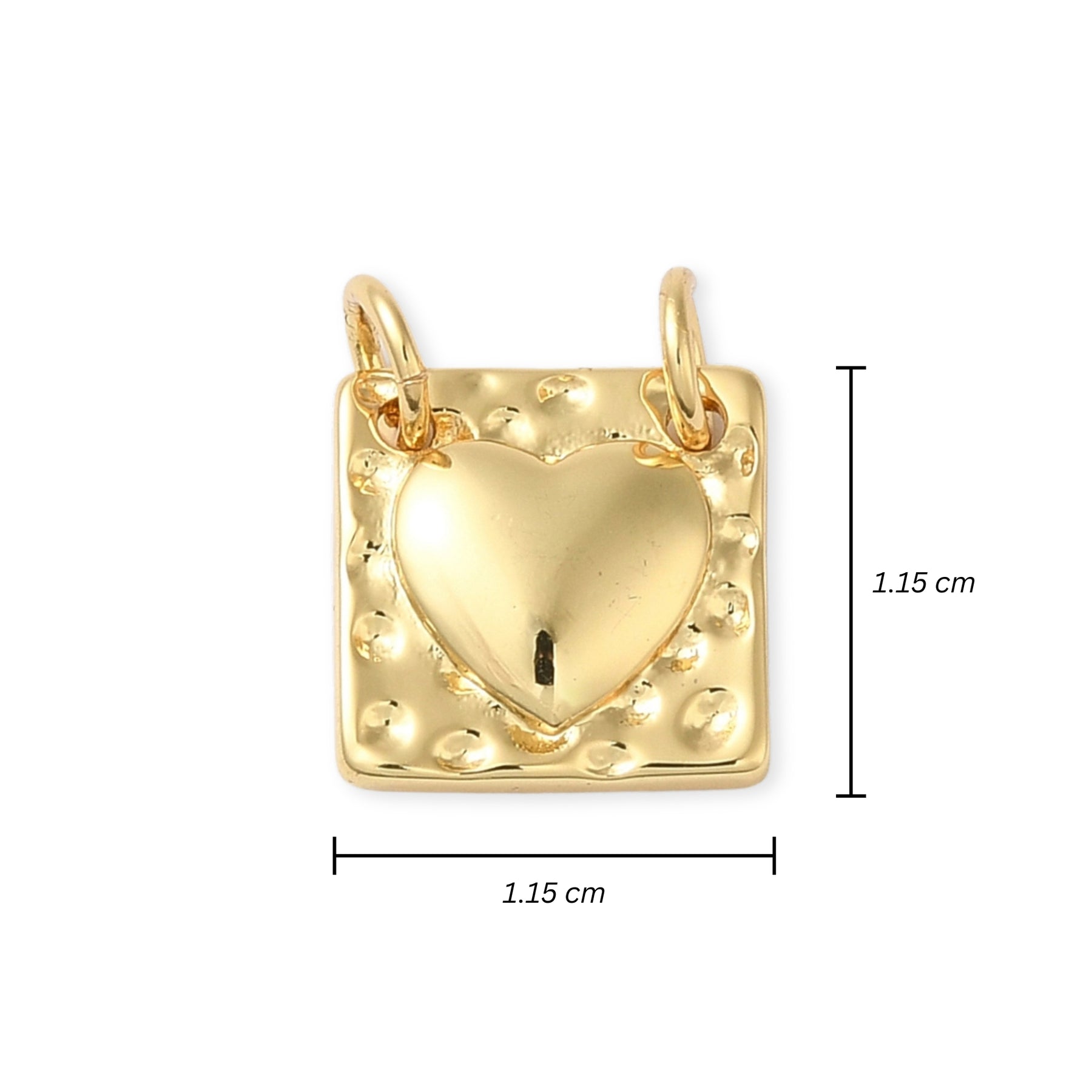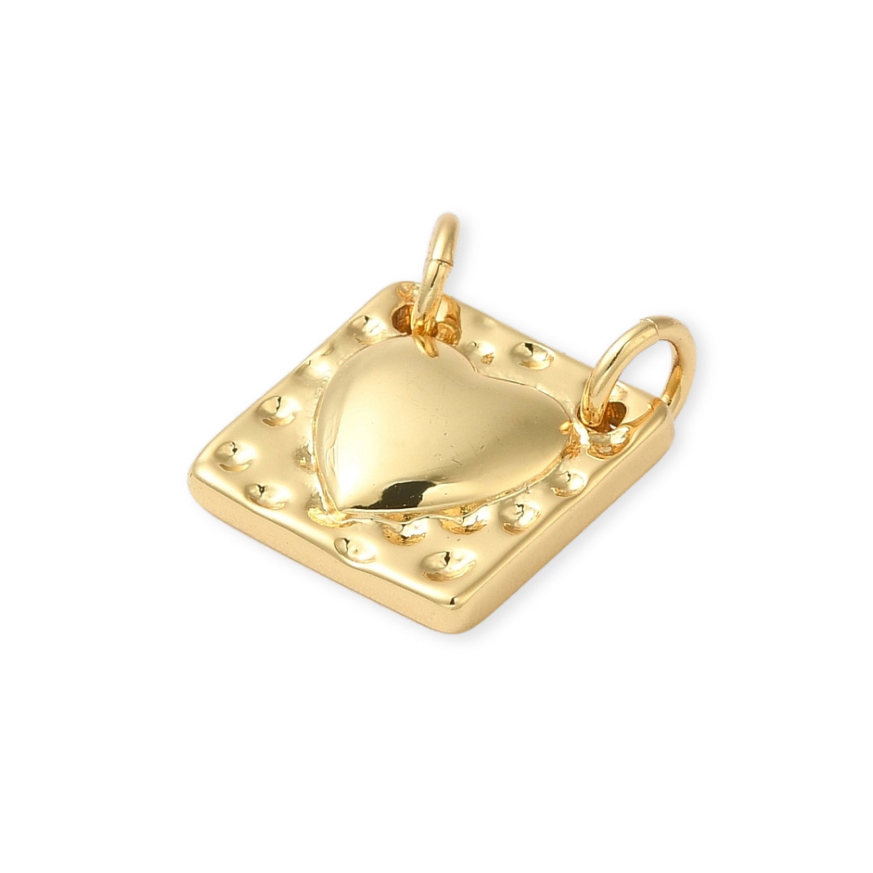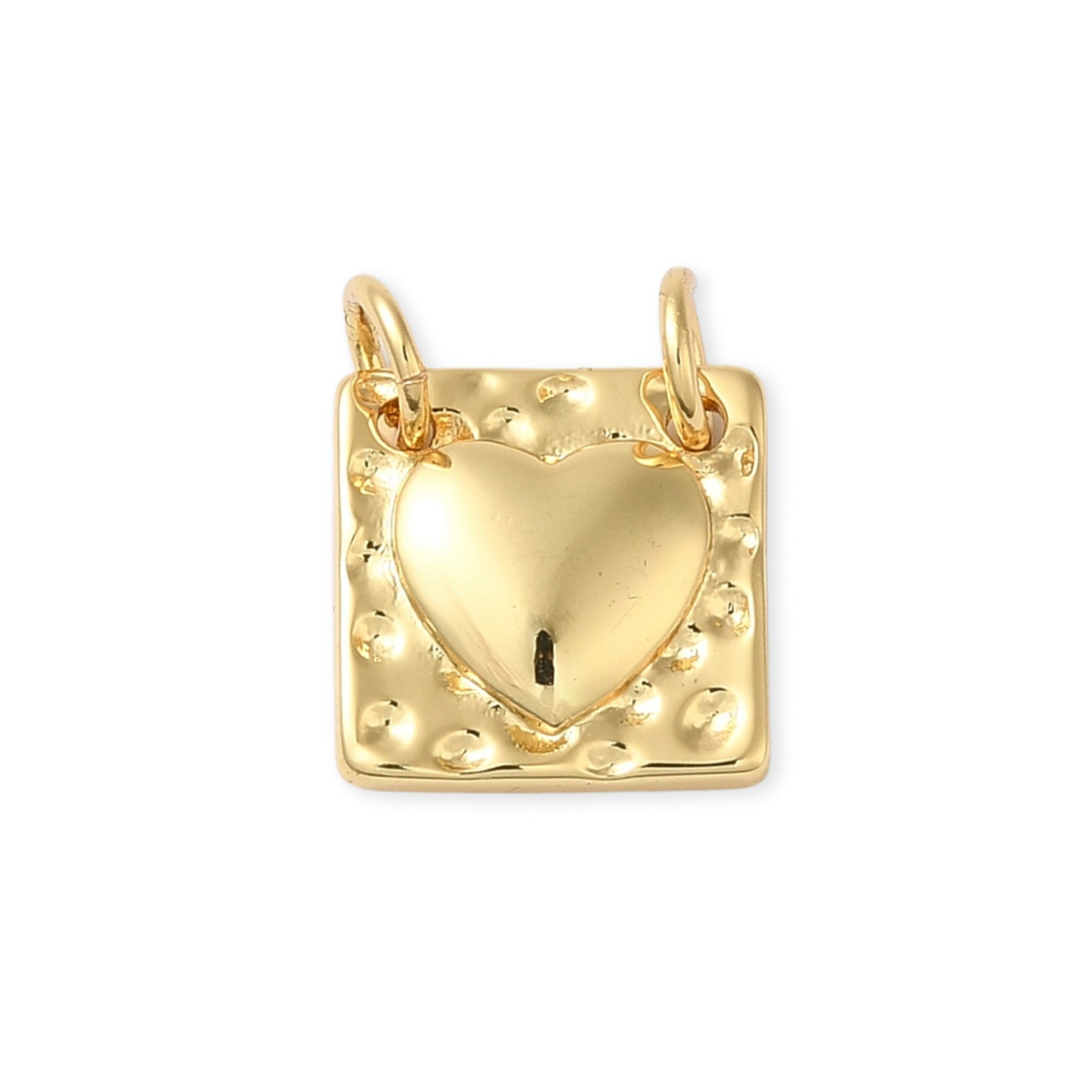 Square pendant made of gold plating with a heart in the center.