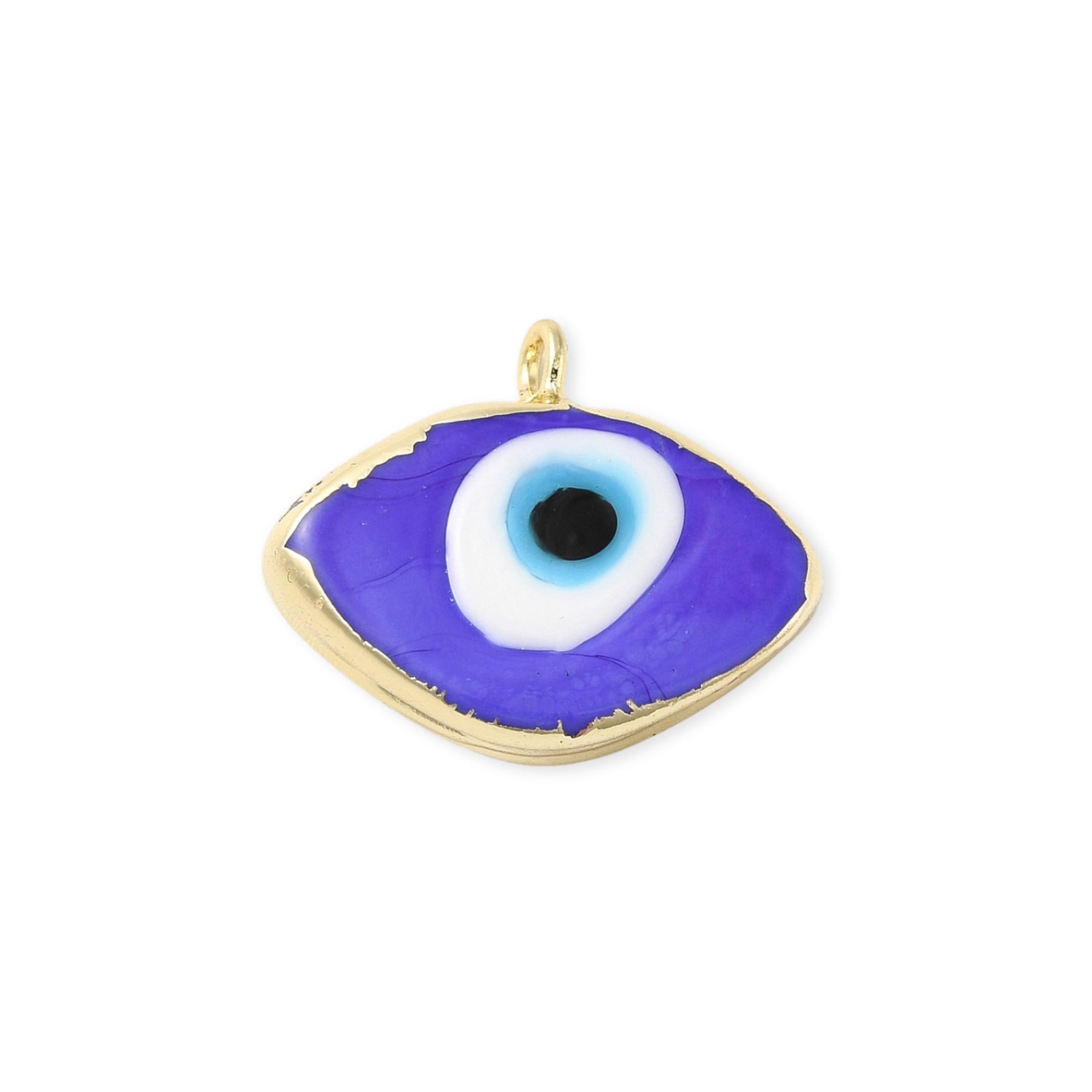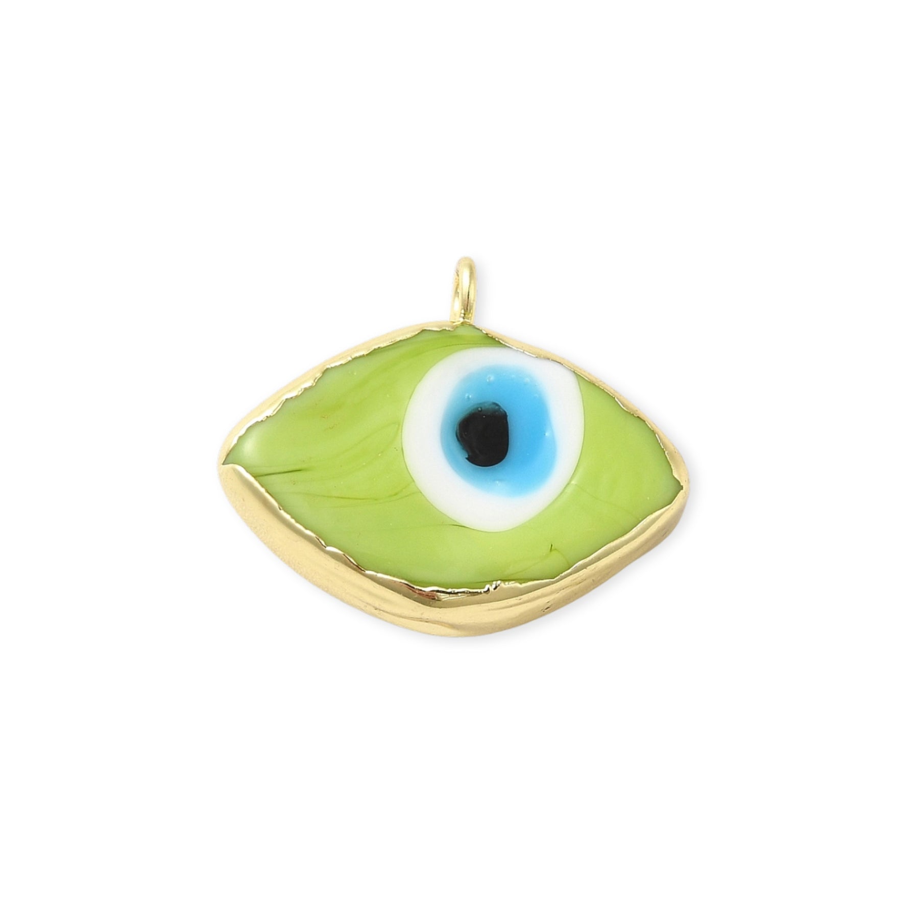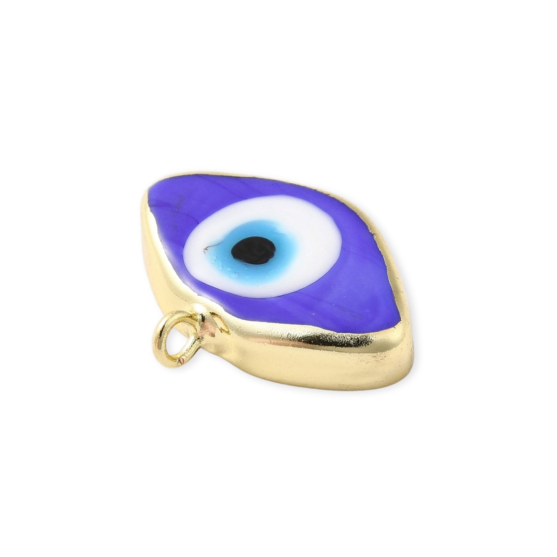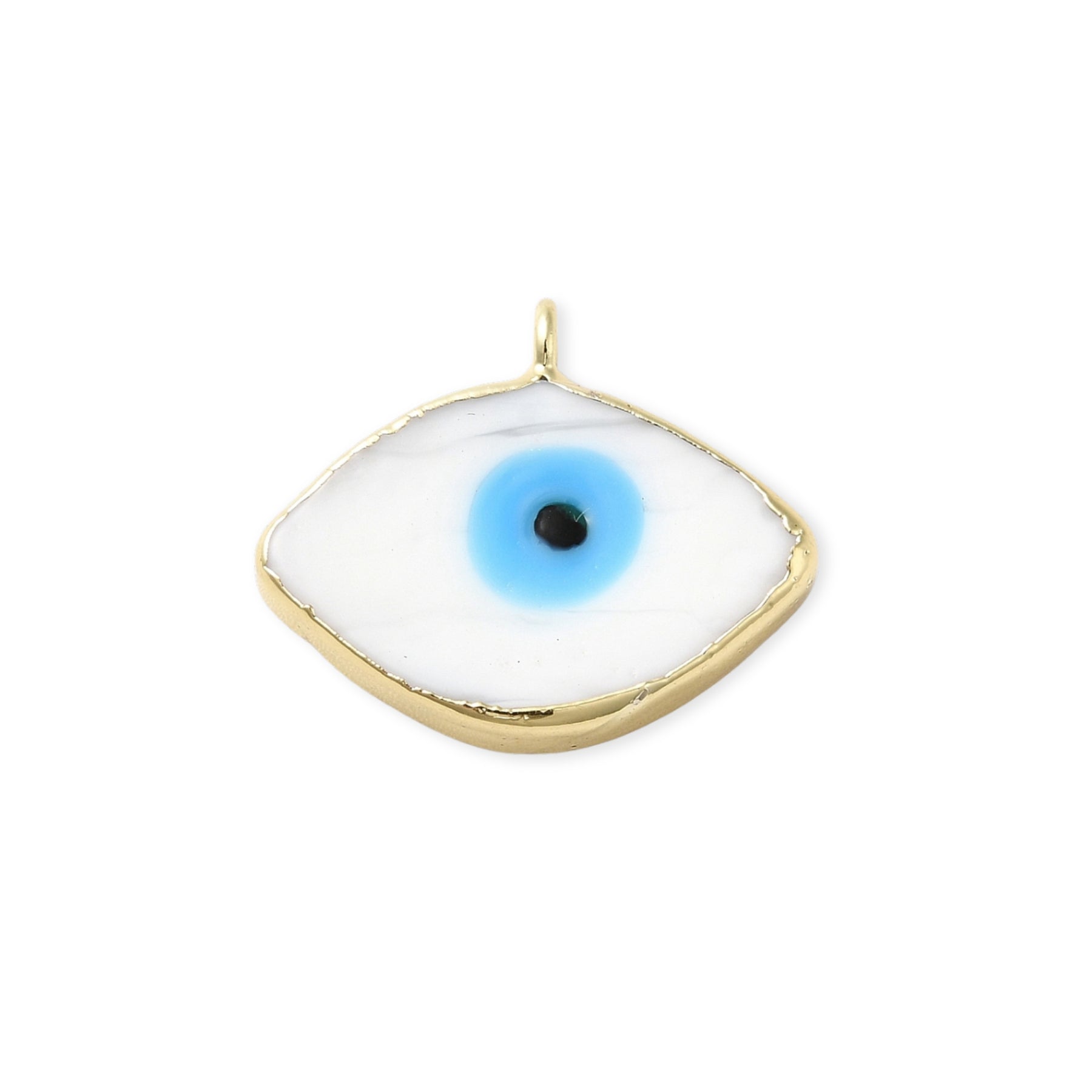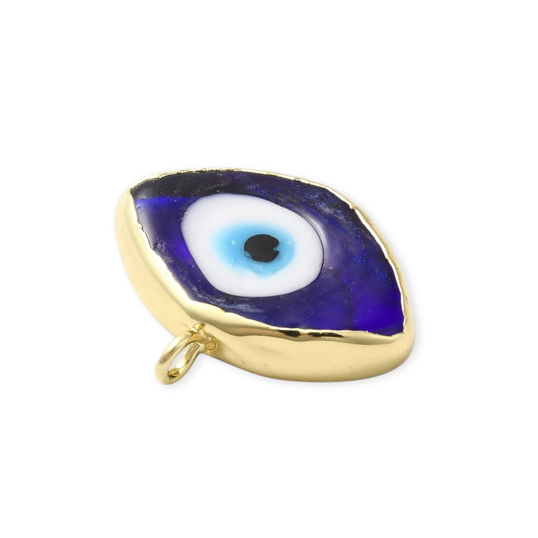 Dije en forma de ojo elaborado en murano con biselado en chapa de oro.