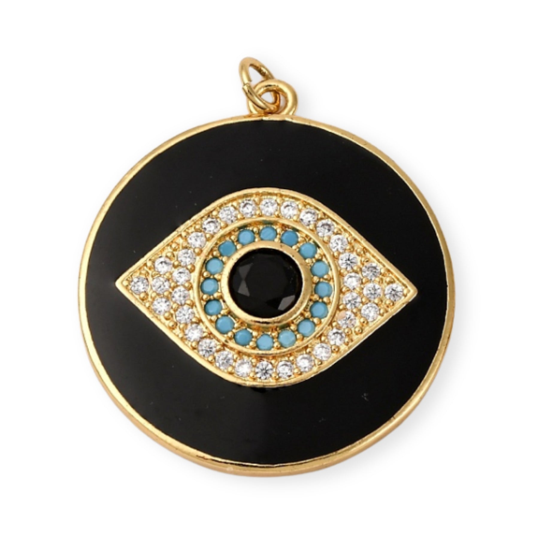 Dije circular de ojo turco elaborado en chapa de oro con zirconia y esmalte.