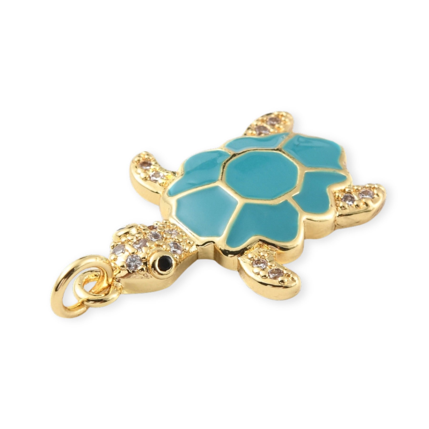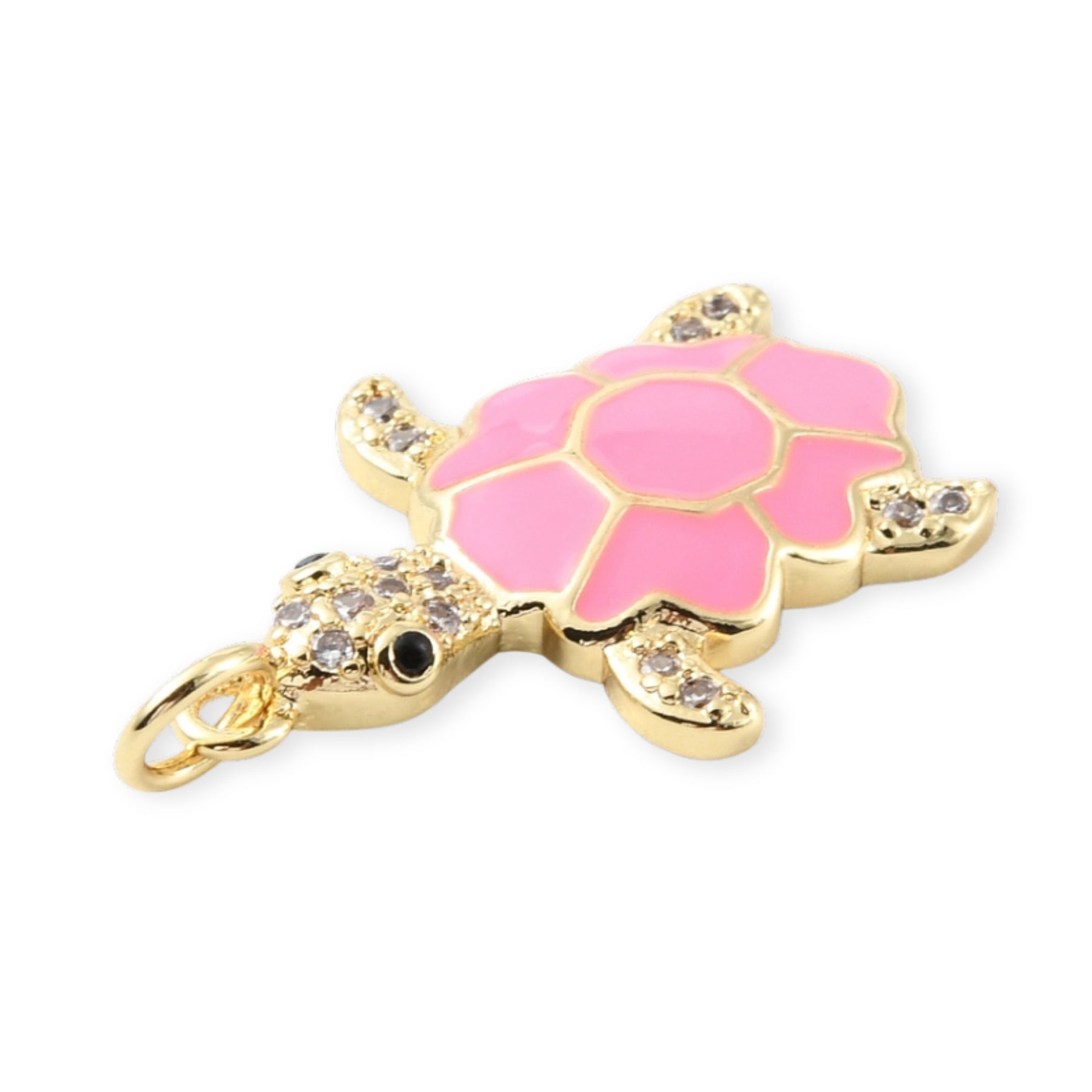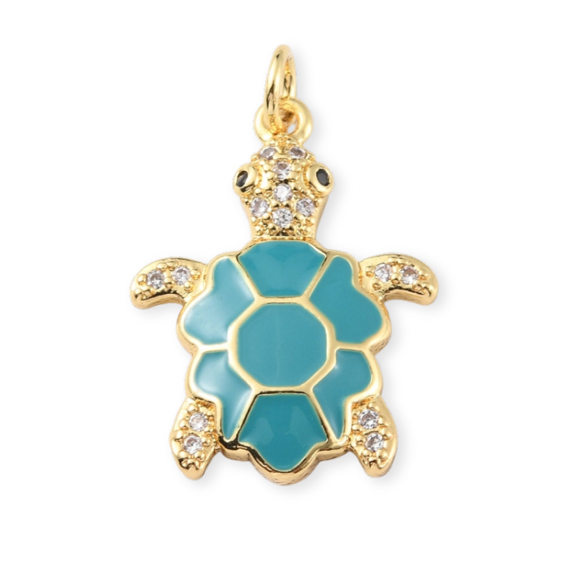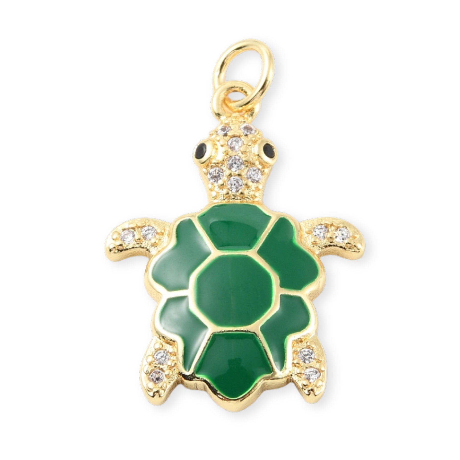 Turtle-shaped pendant made of gold-plated enamel in 3 color variations.