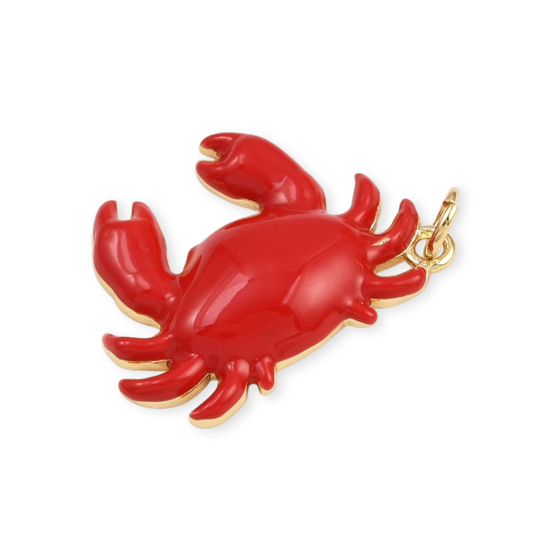 Dije en forma de cangrejo elaborado en chapa de oro y cubierto con esmalte.