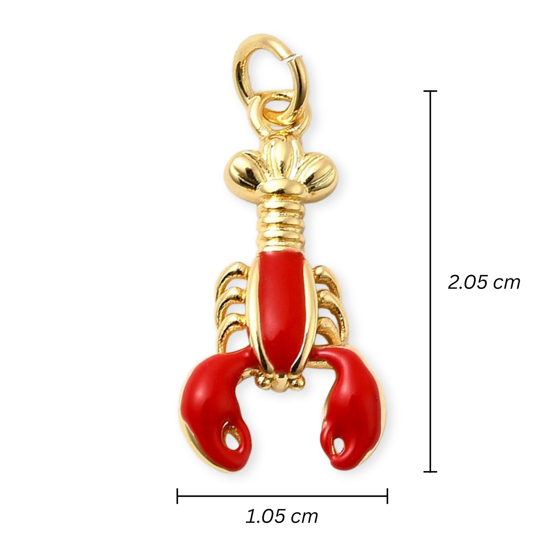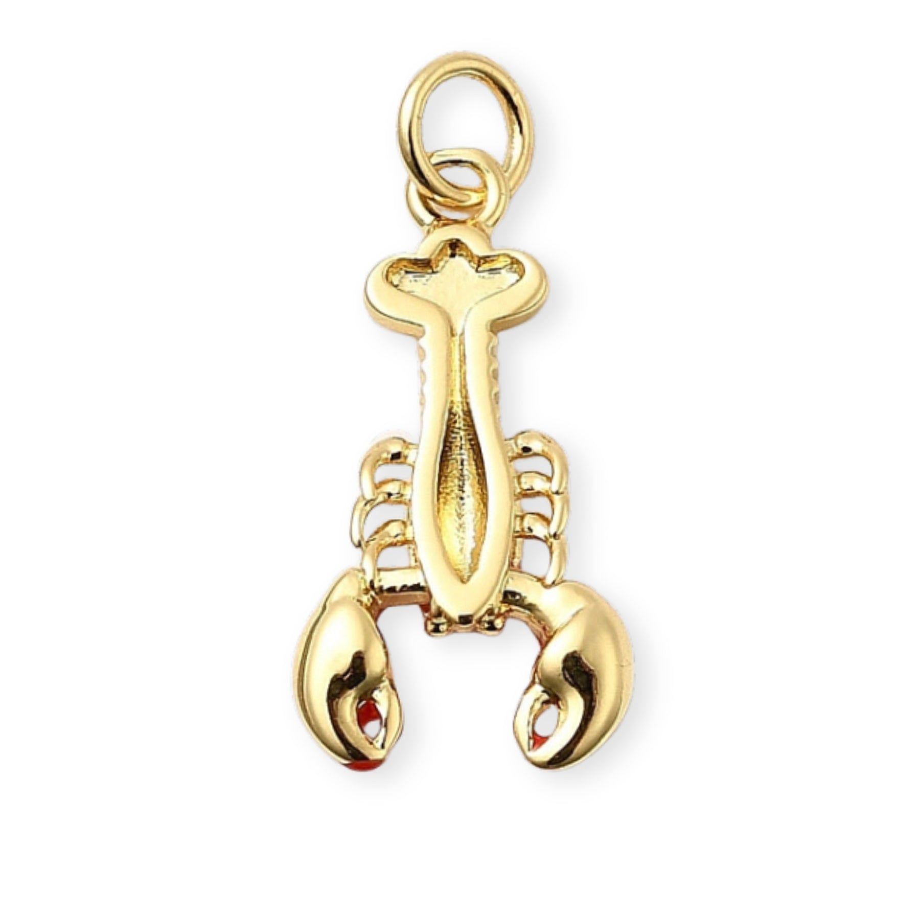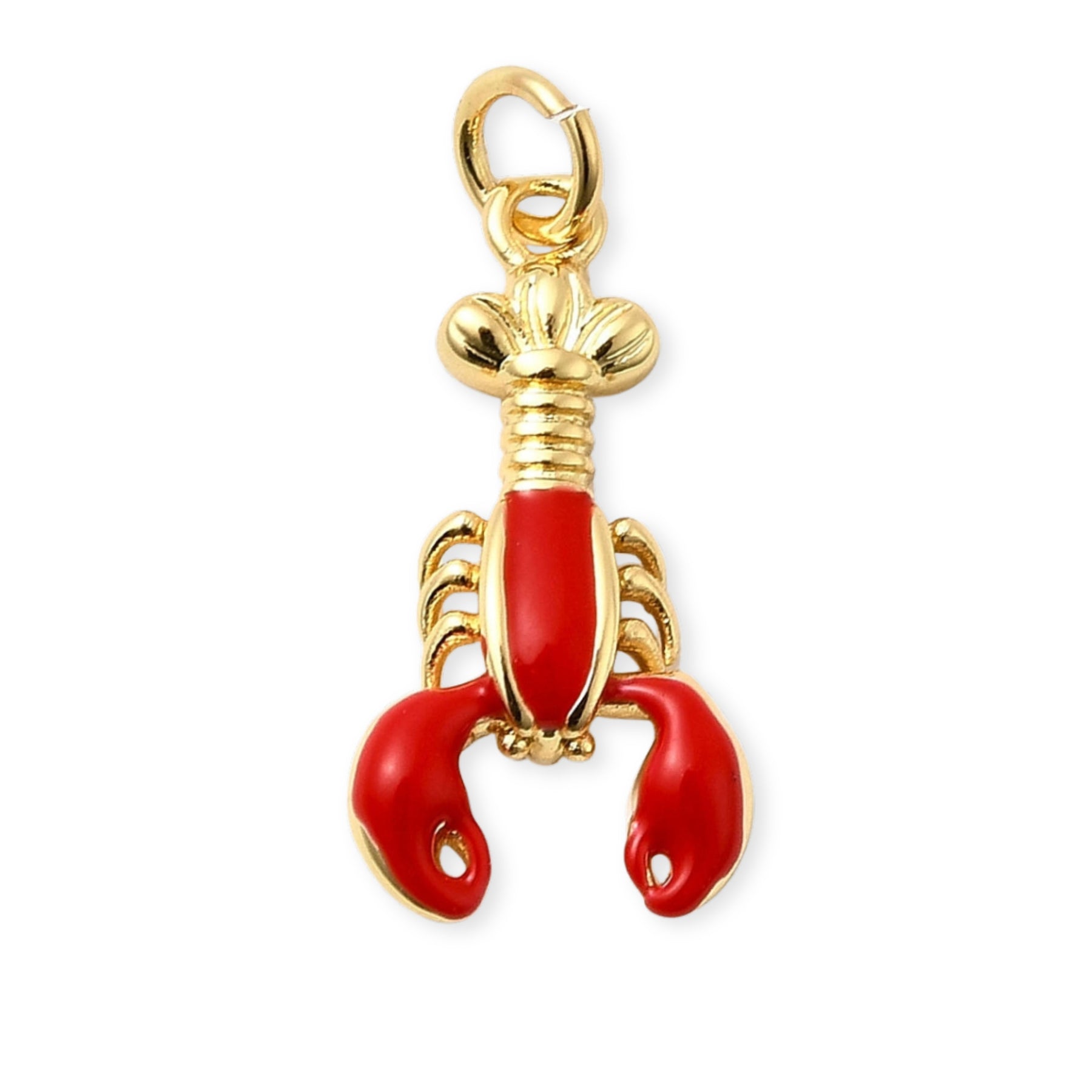 Dije en forma de langosta elaborado en chapa de oro y cubierto con esmalte.