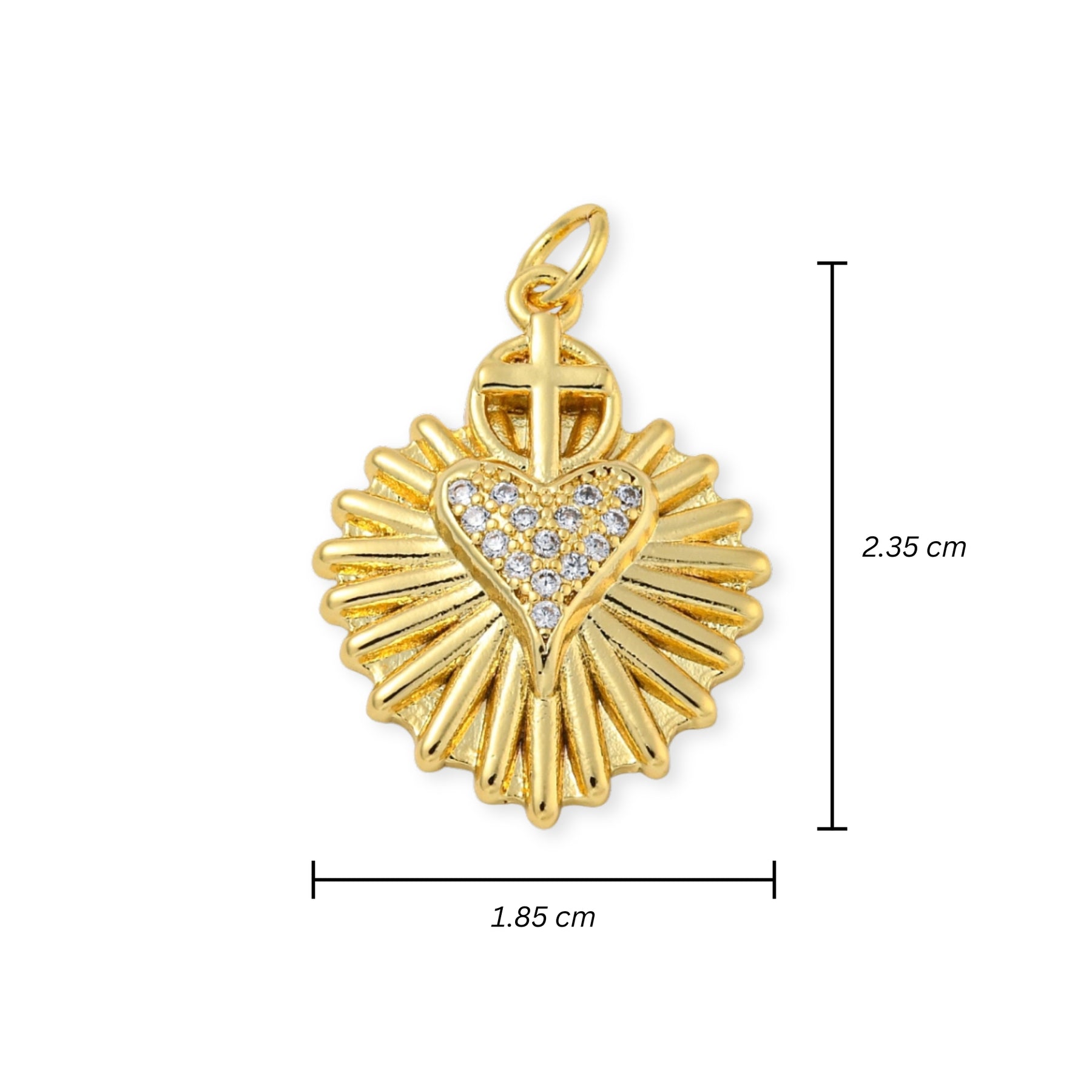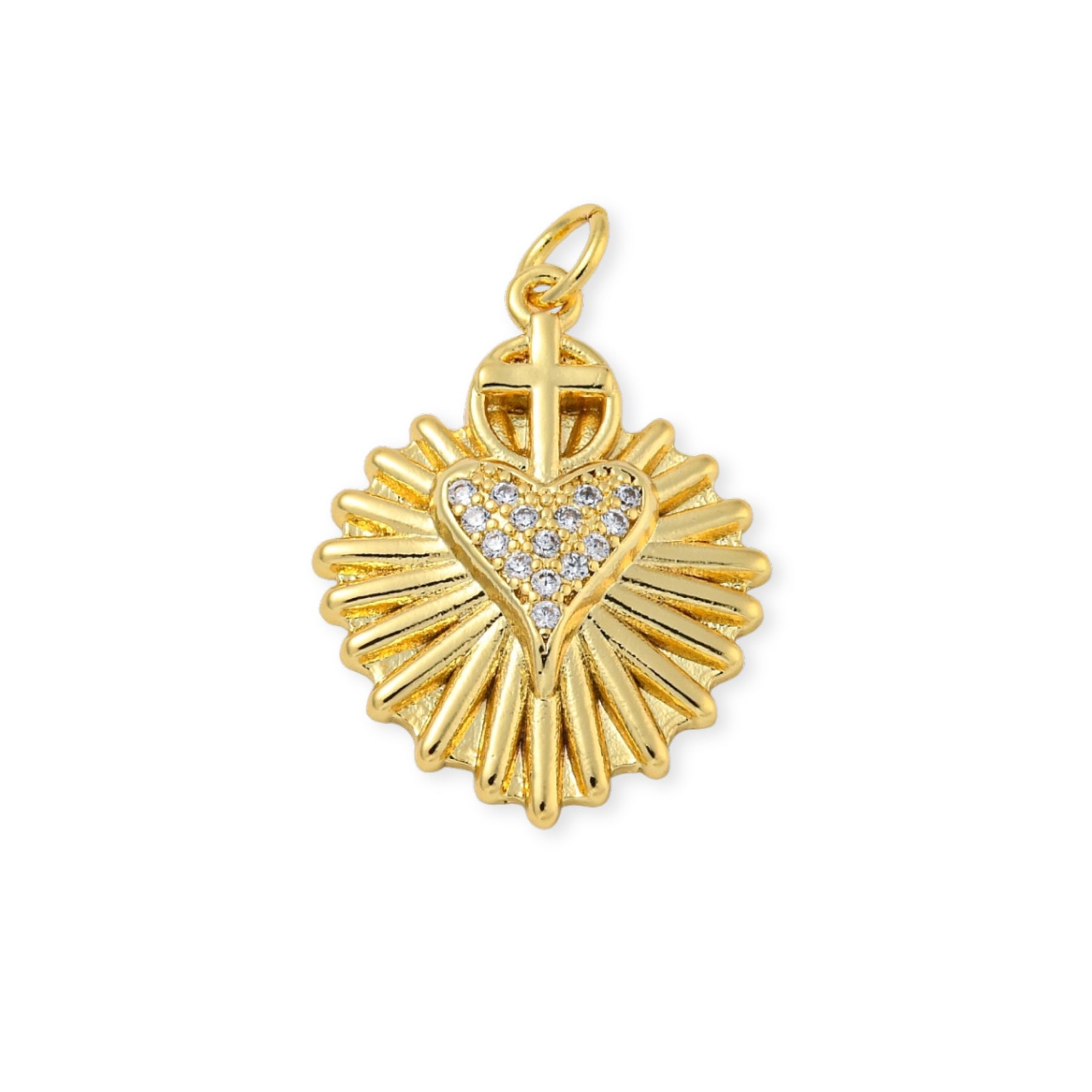 Pendant with heart and cross design made of gold plating, decorated with zirconia.