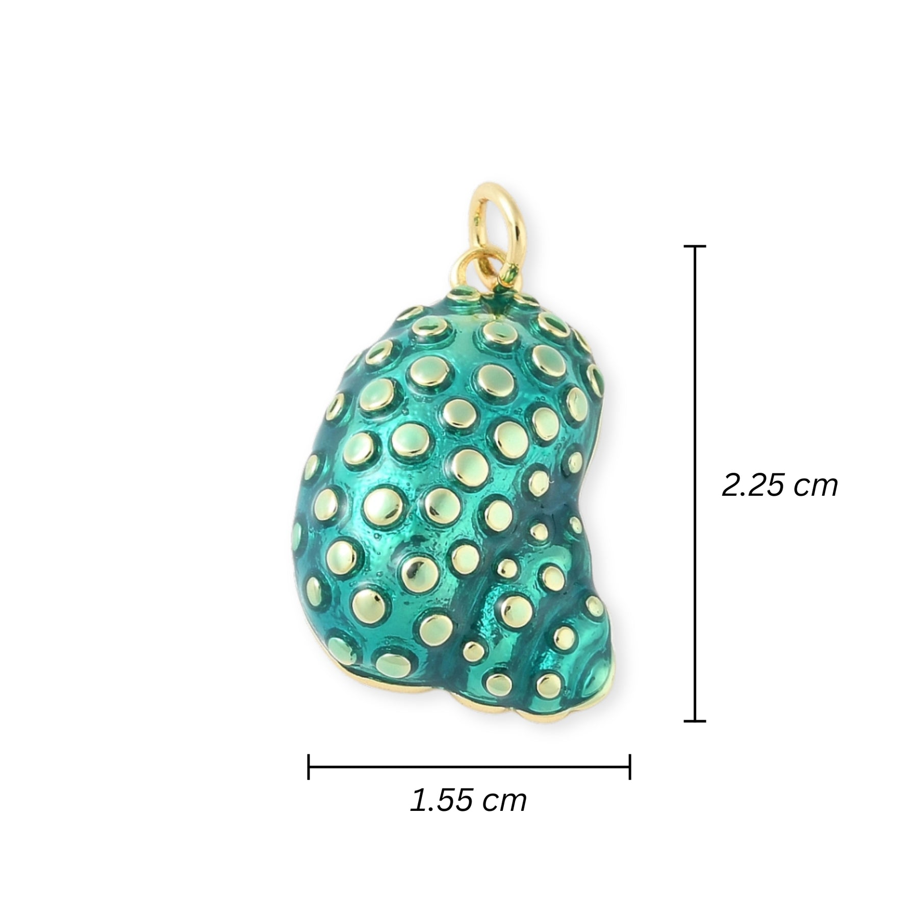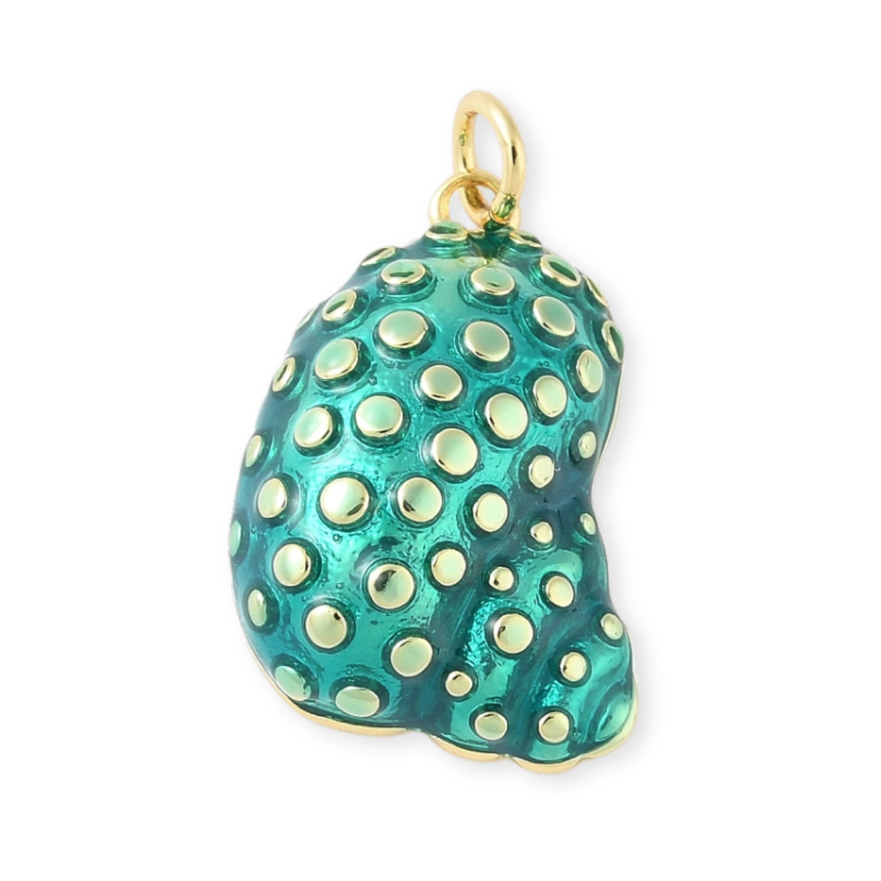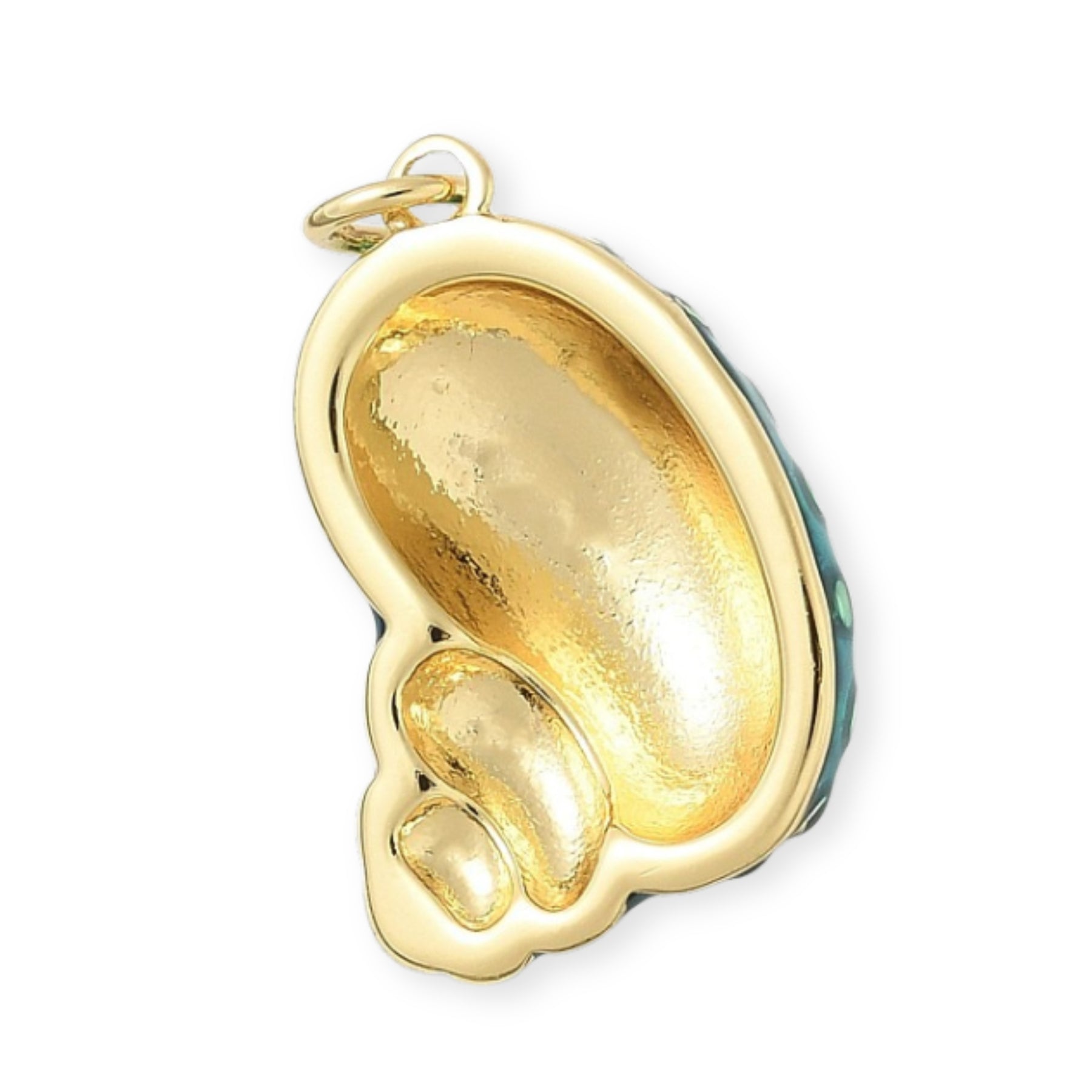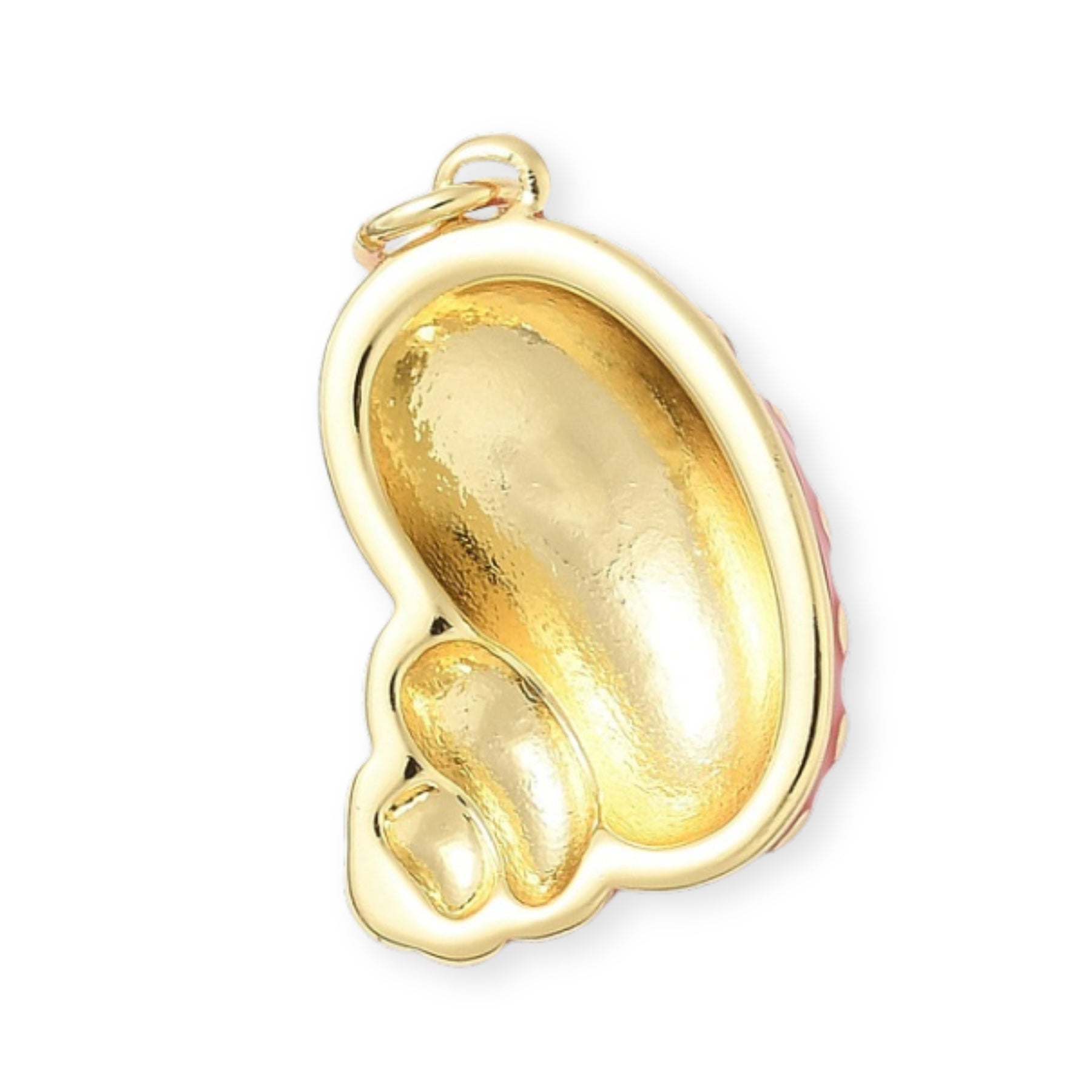 Dije en forma de concha elaborado en chapa de oro y cubierto con esmalte.