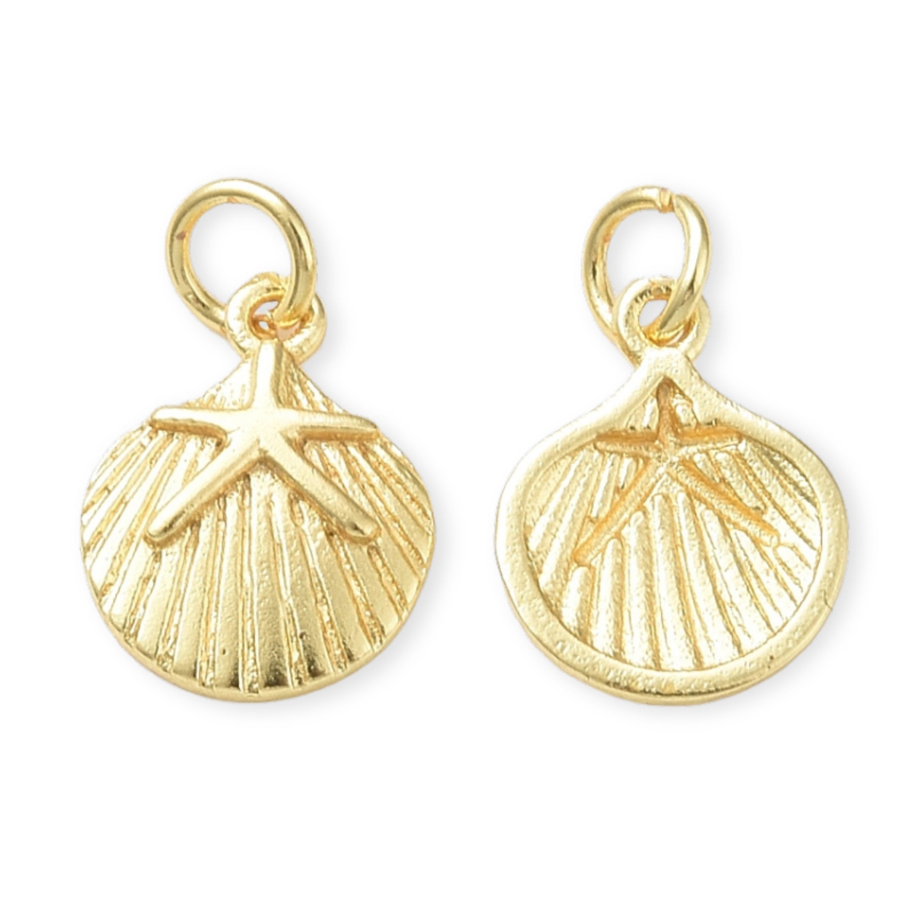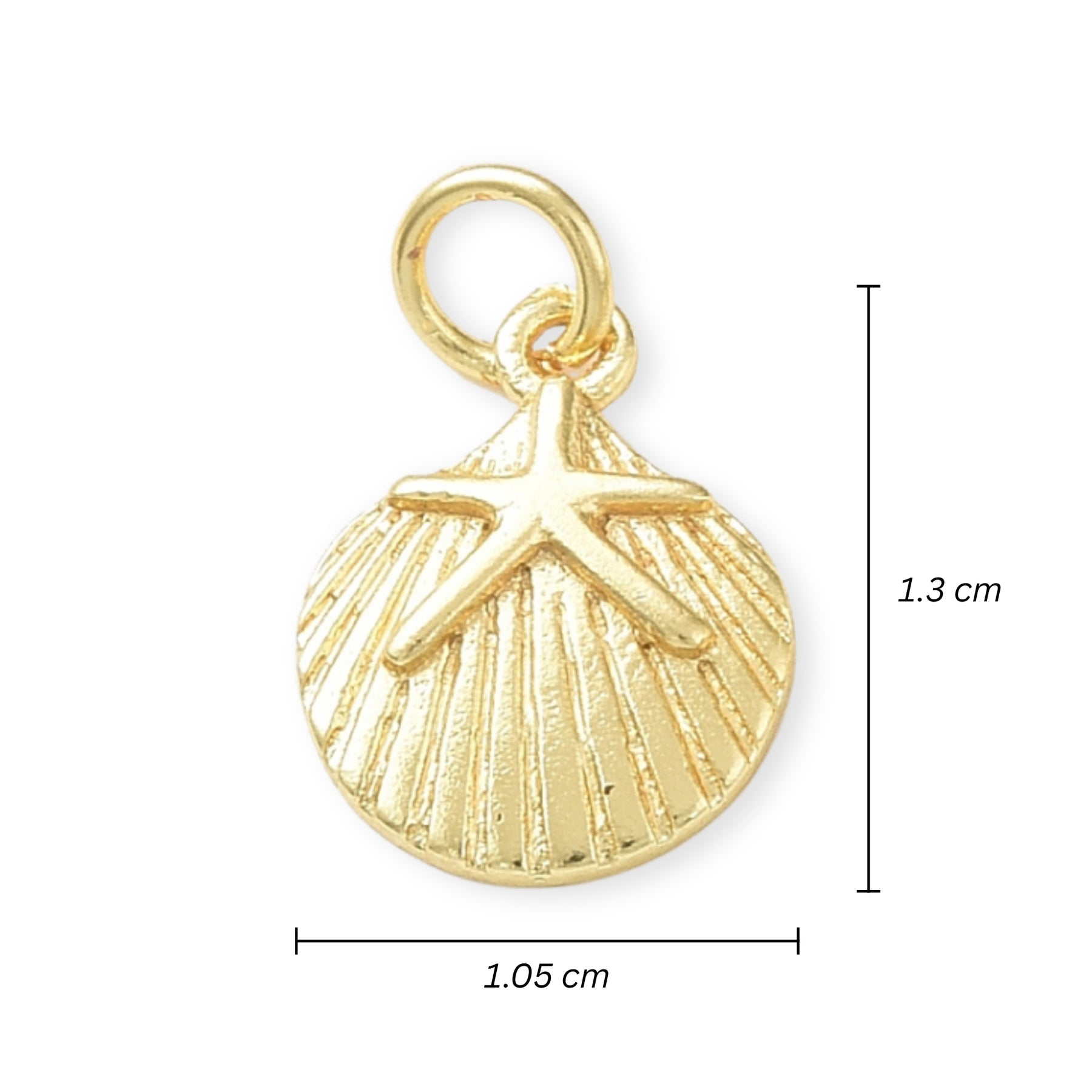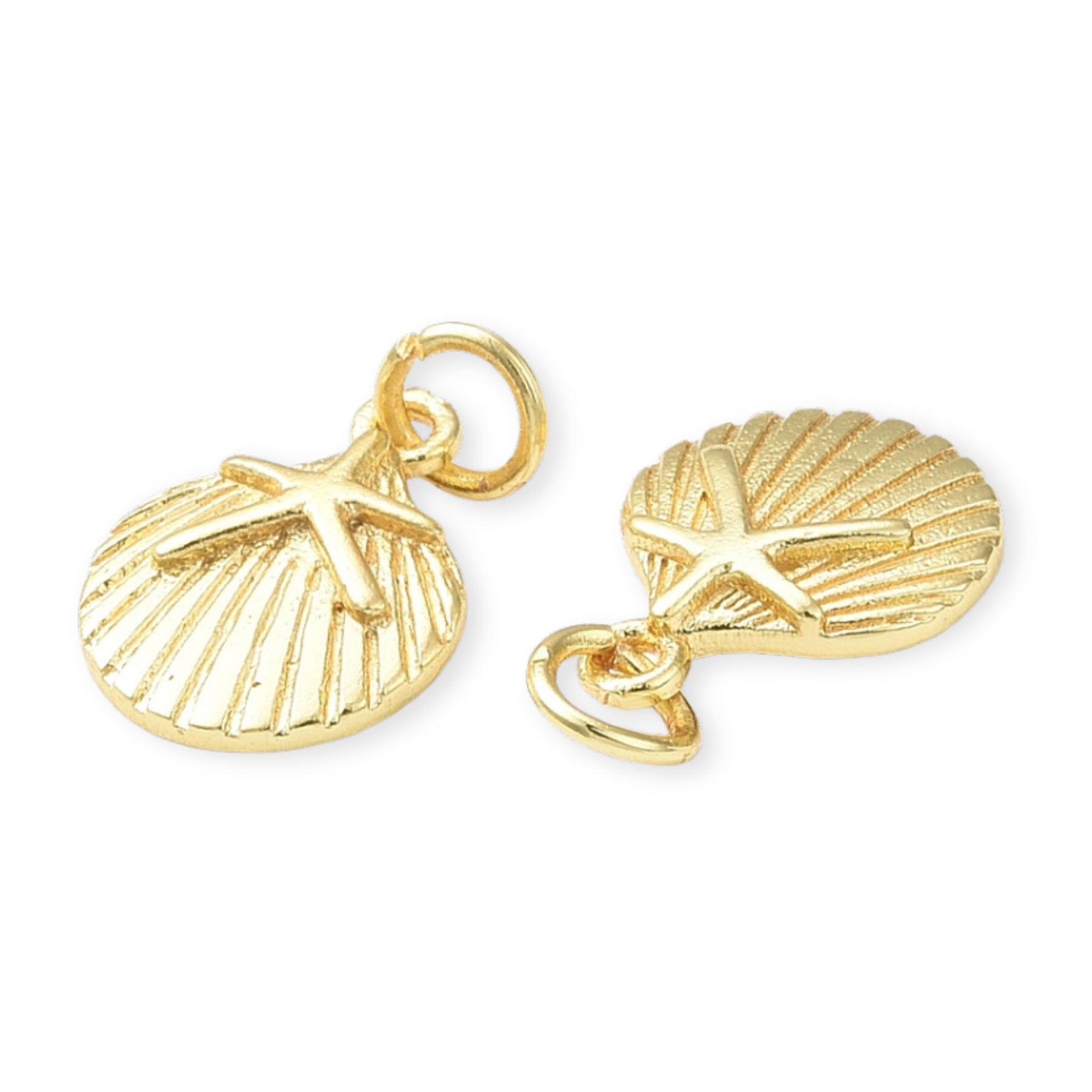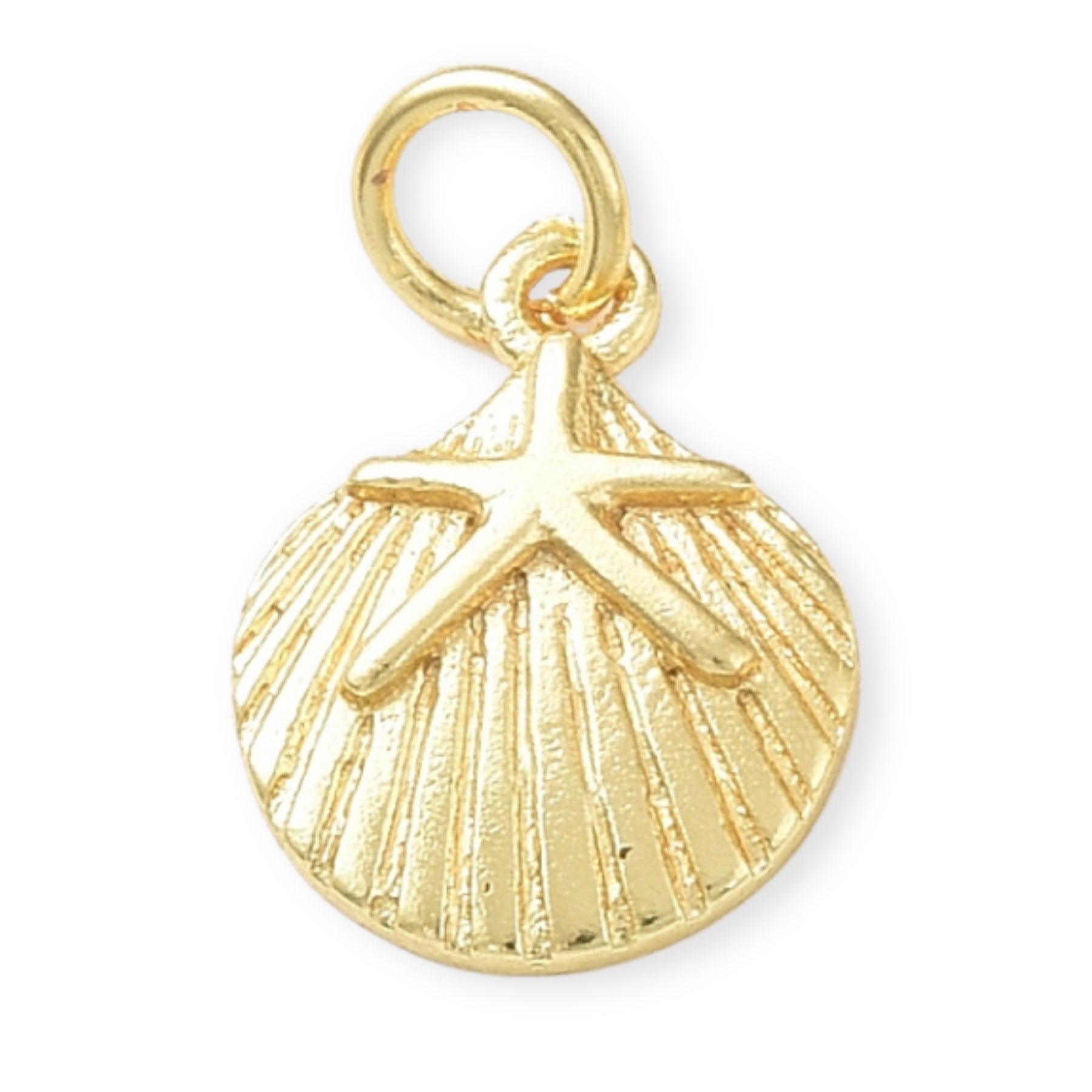 Dije en forma de concha, elaborado en chapa de oro con detalle de estrella de mar.