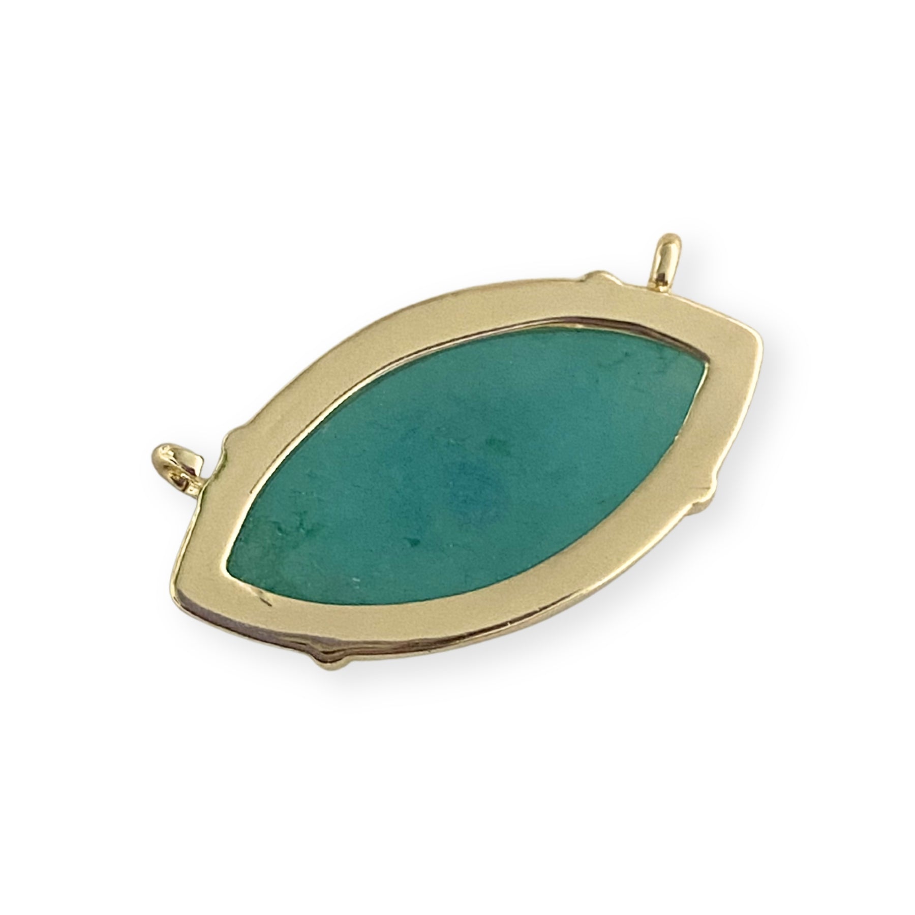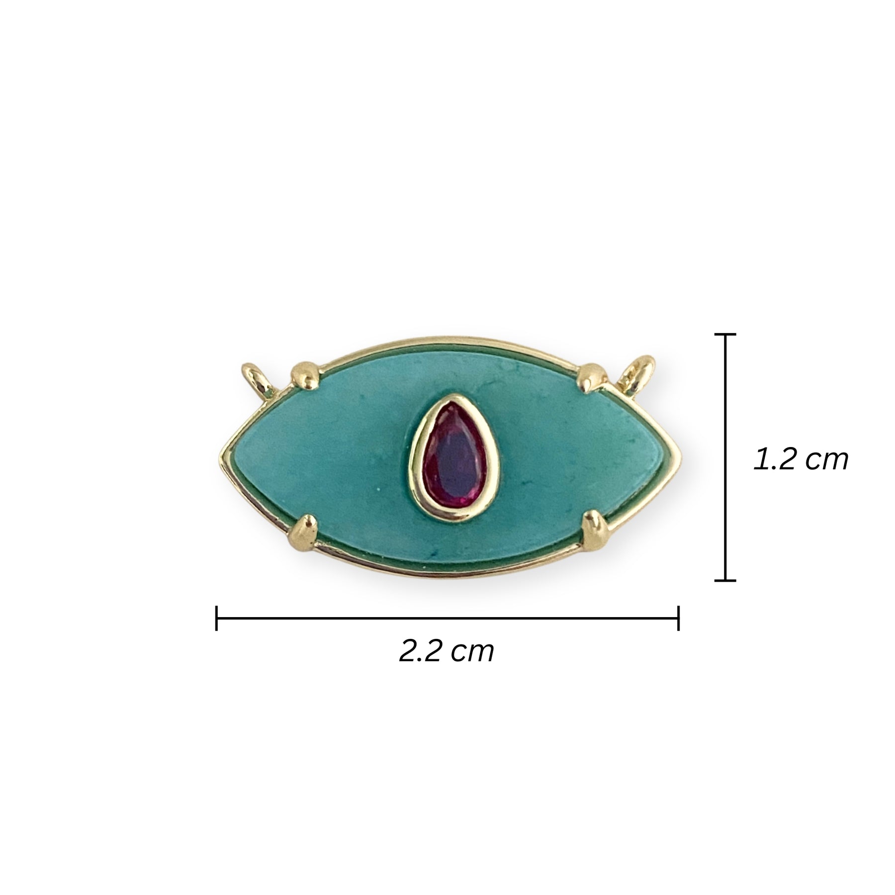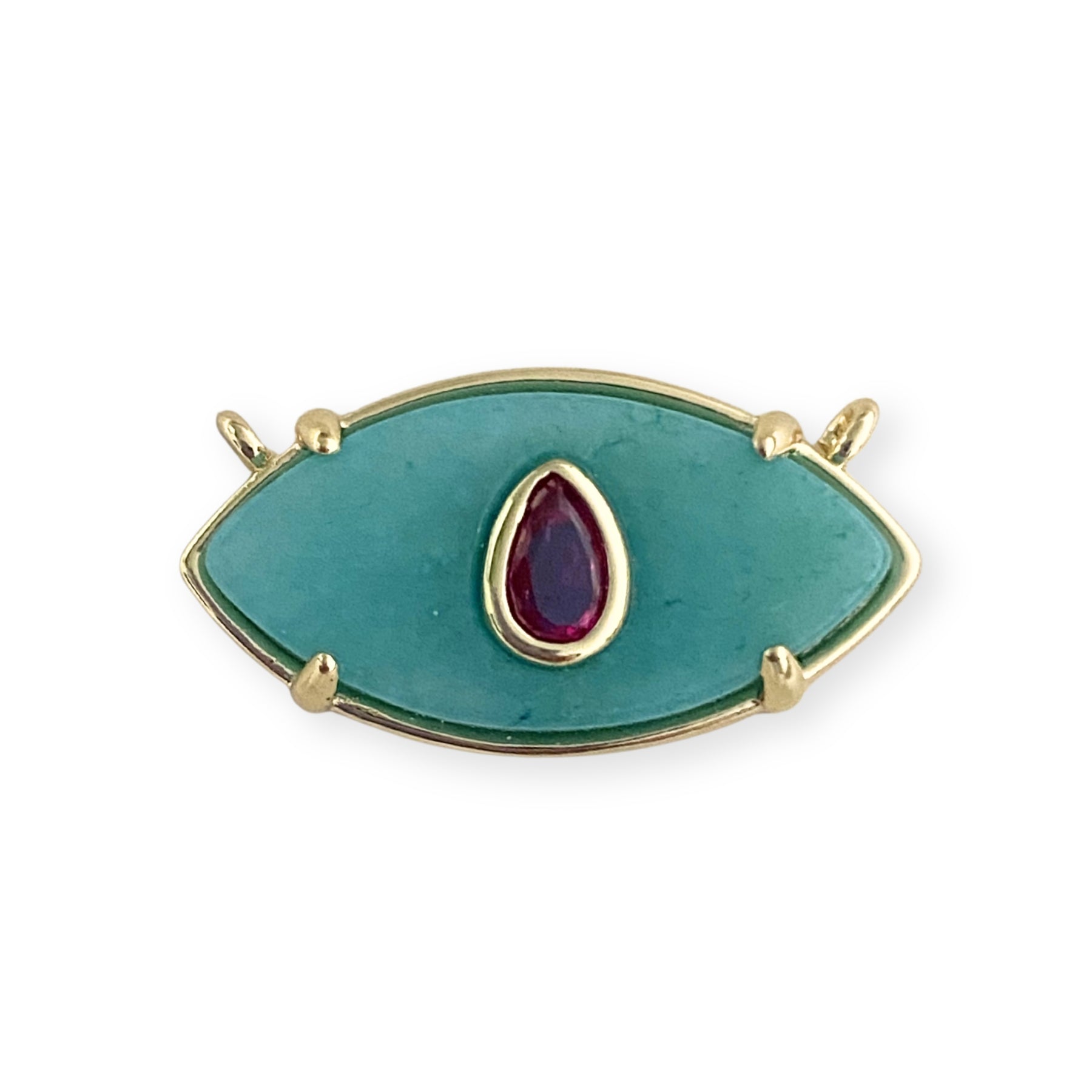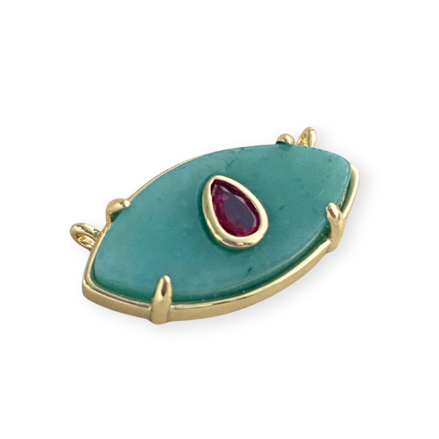 Dije en forma de ojo elaborado con piedra natural y zirconia, montado sobre base de chapa de oro.