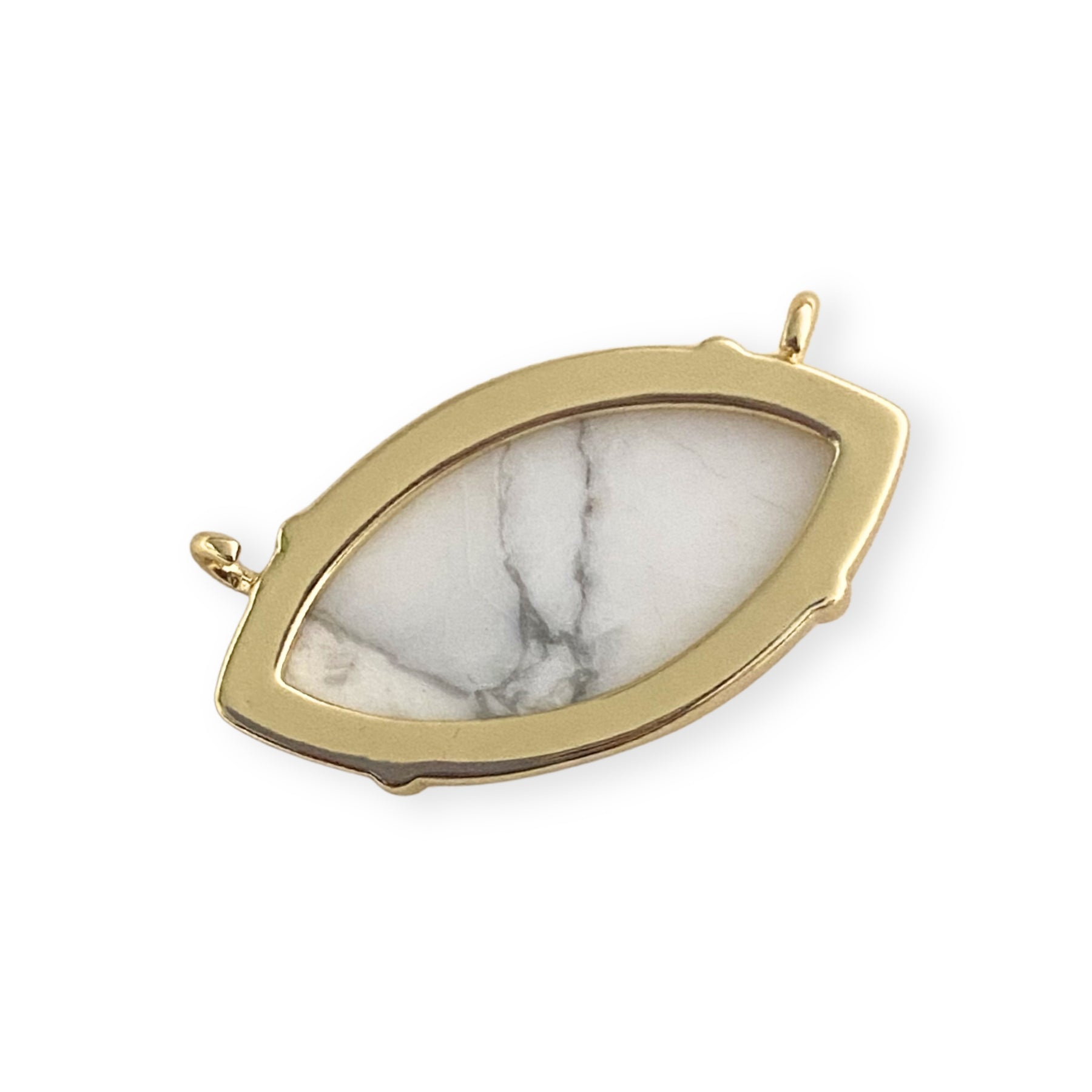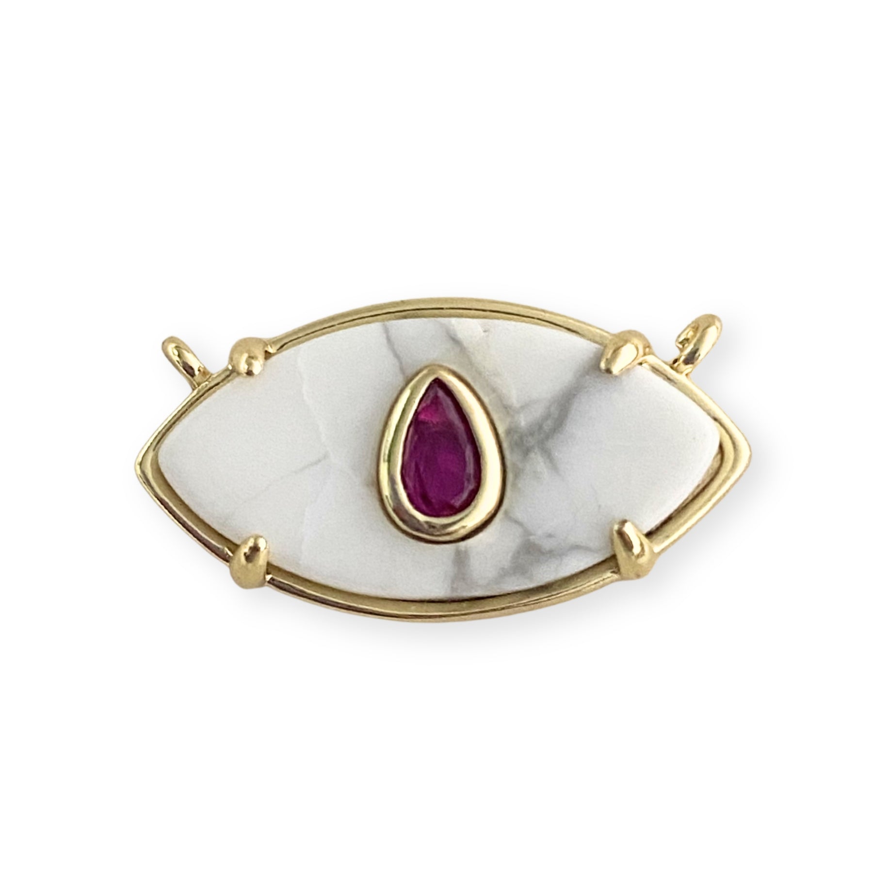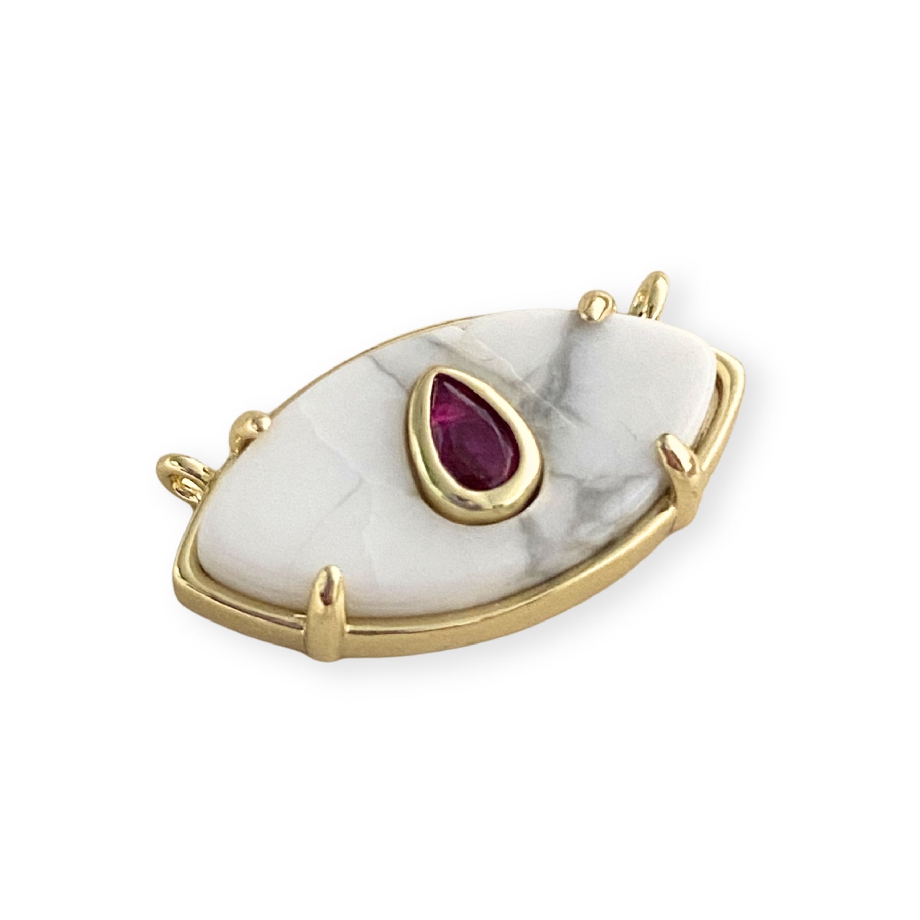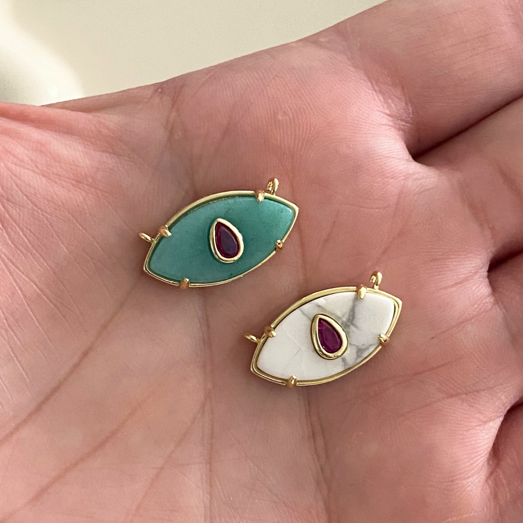 Dije en forma de ojo elaborado con piedra natural y zirconia, montado sobre base de chapa de oro.