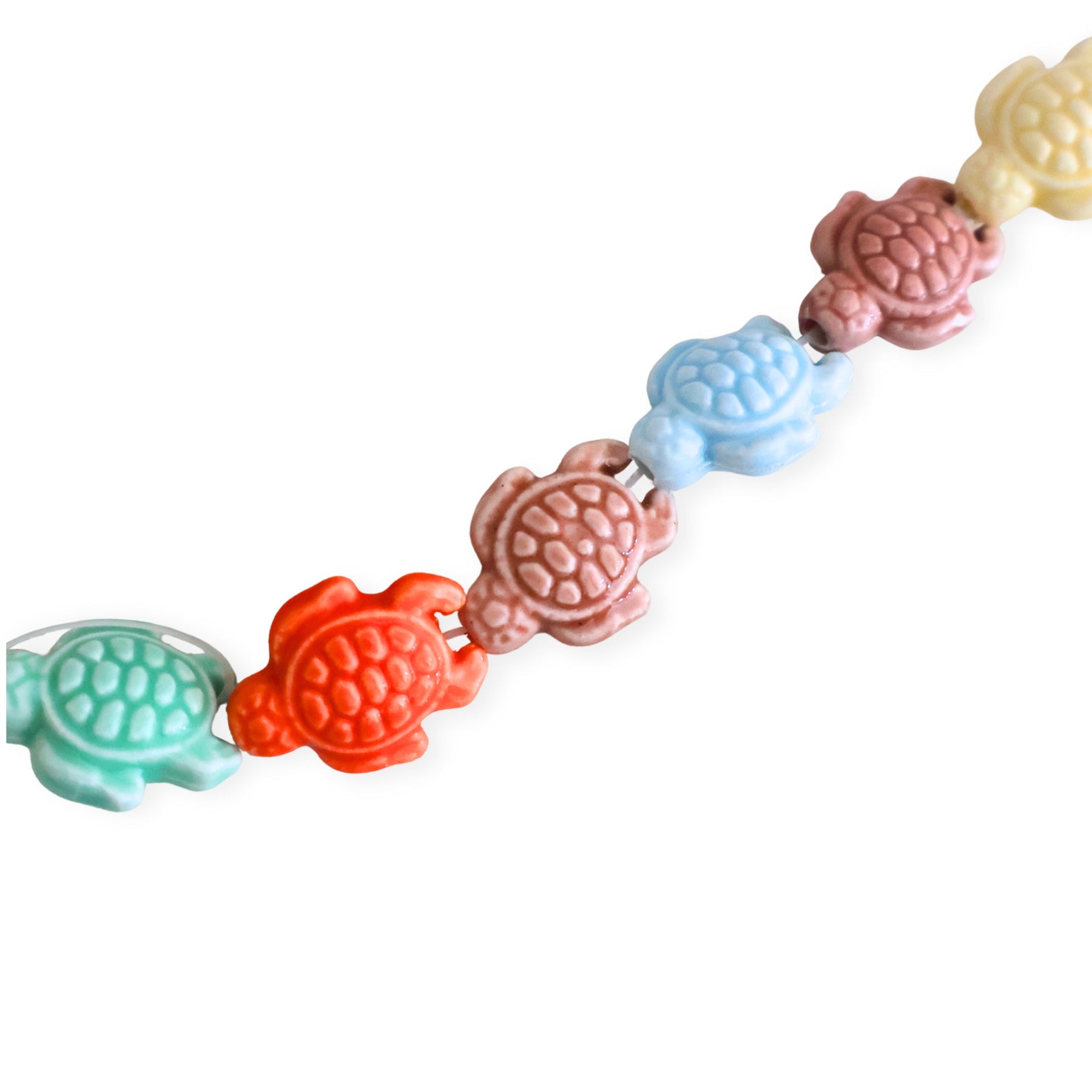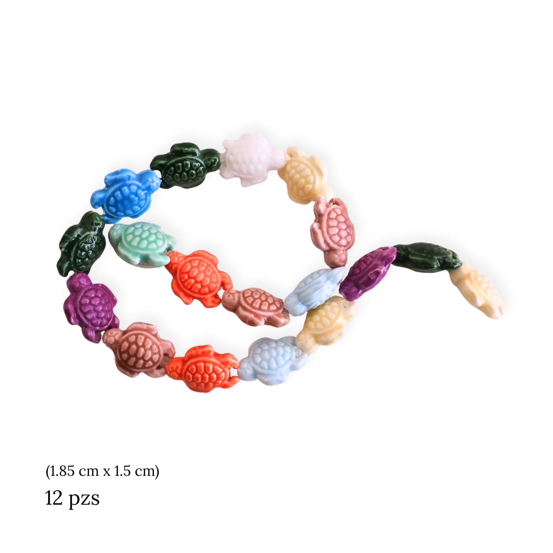 Tira de 12 separadores con diseño de tortuga elaborados en cerámica, perfectos para proyectos de bisutería y accesorios artesanales.